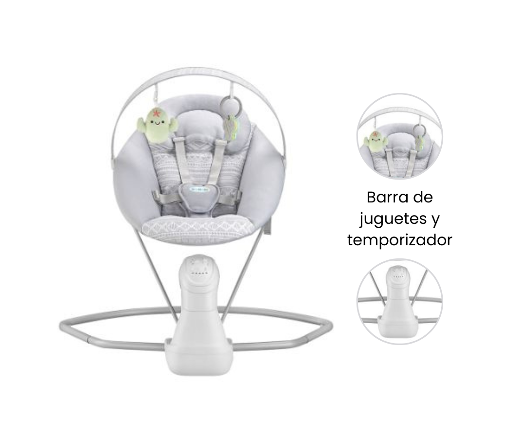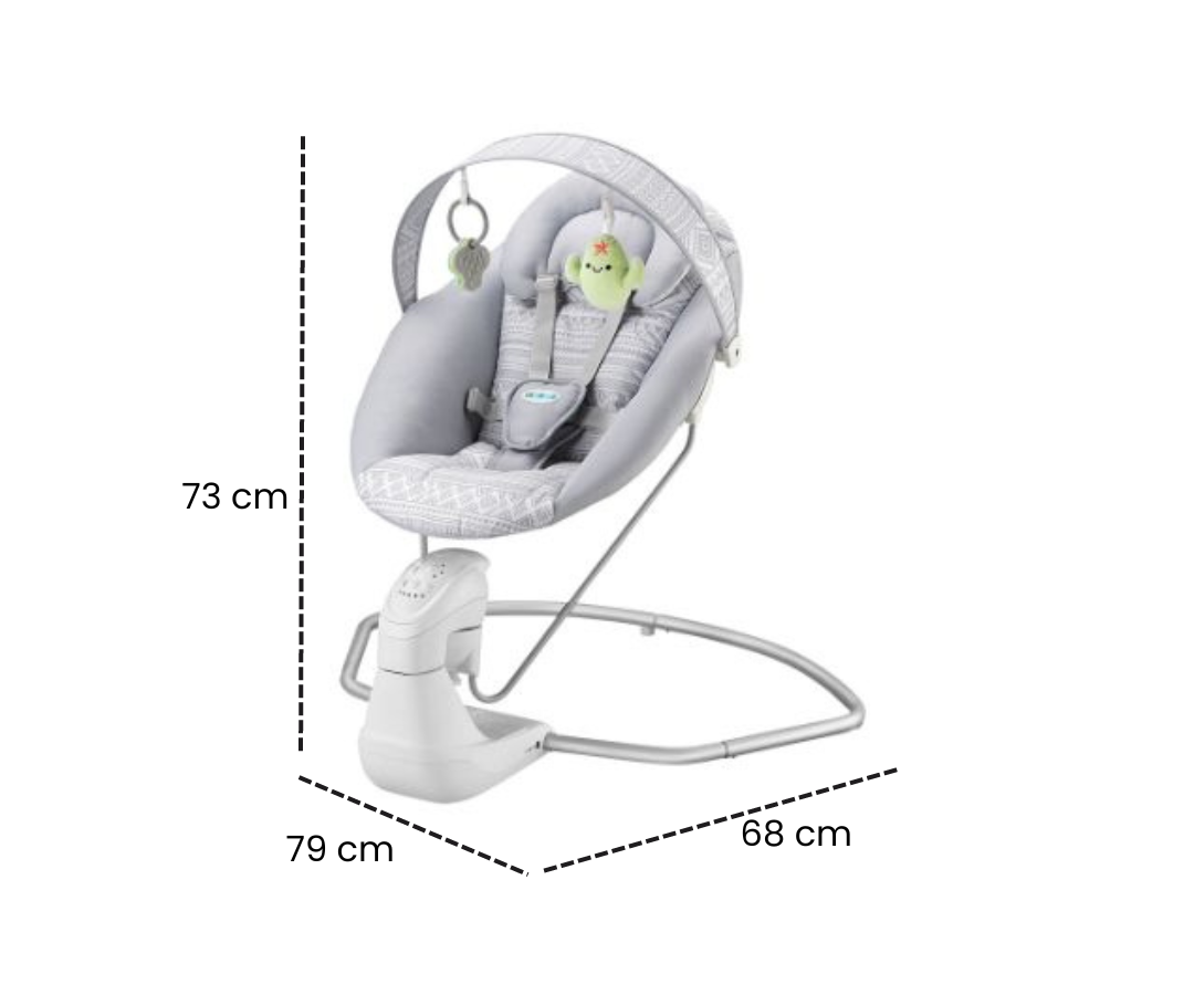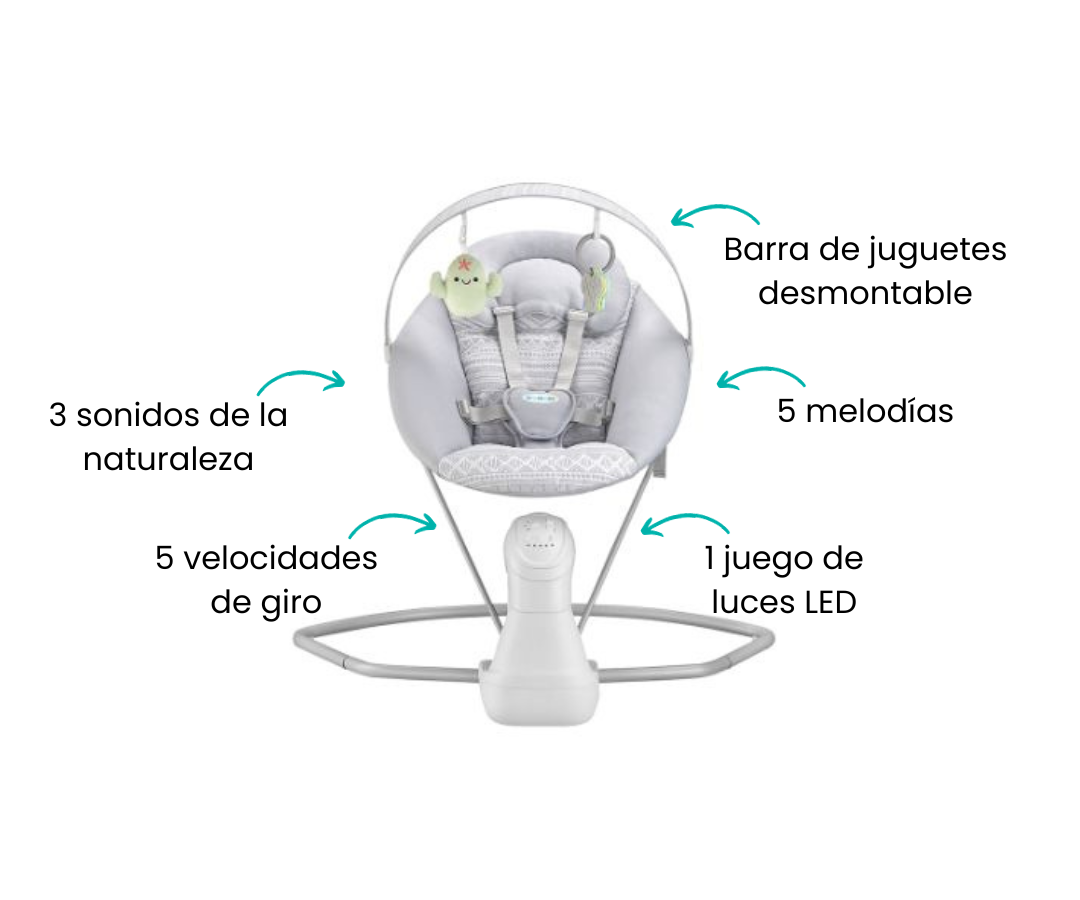 Este columpio eléctrico ofrece un suave movimiento de lado a lado que acunará a tu pequeño en un ambiente relajante, ideal para calmarlo y arrullarlo para que duerma. Con cinco velocidades de giro ajustables, puedes personalizar la experiencia para encontrar la configuración perfecta para tu bebé.