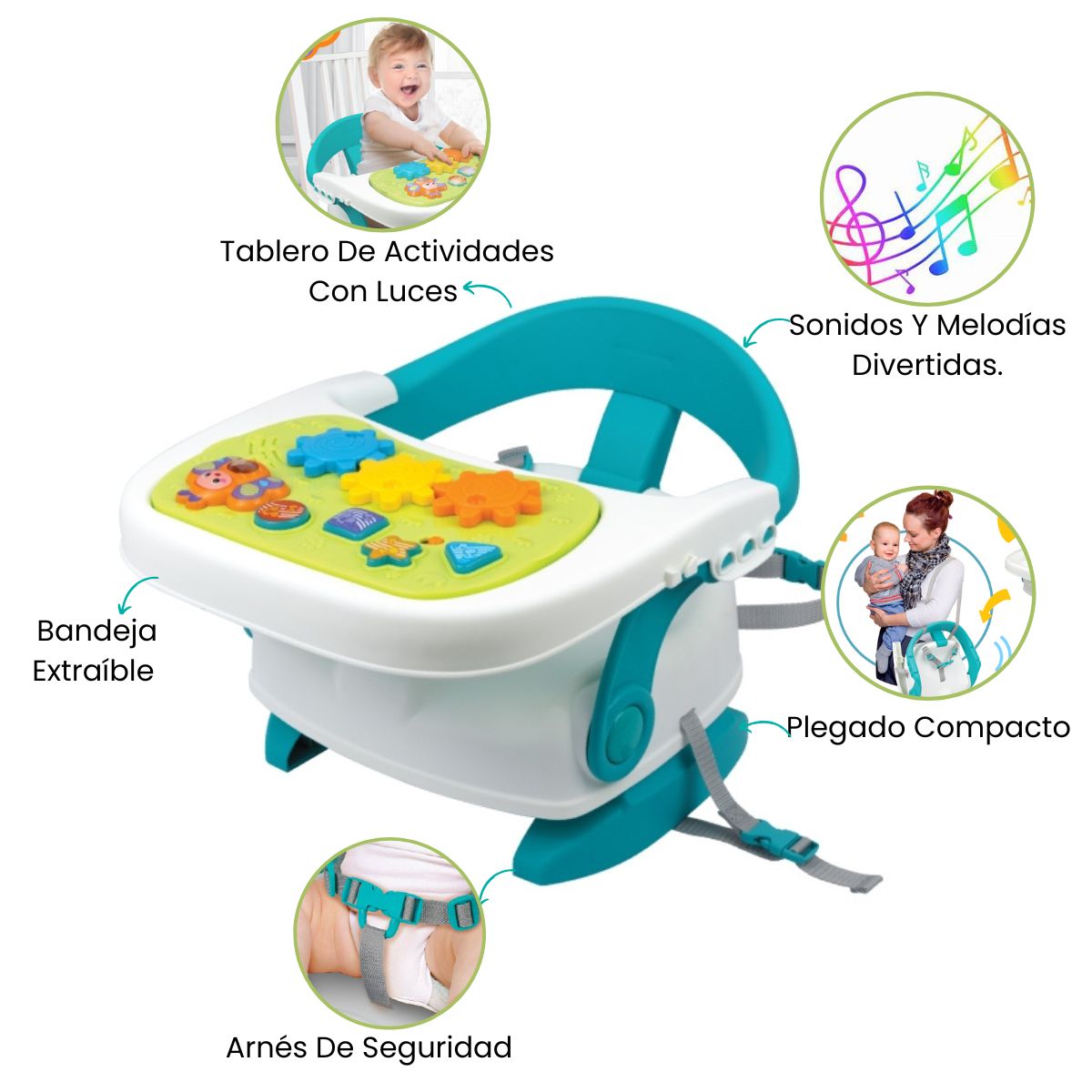 Asiento elevador 3 en 1 con bandeja de actividades desmontable