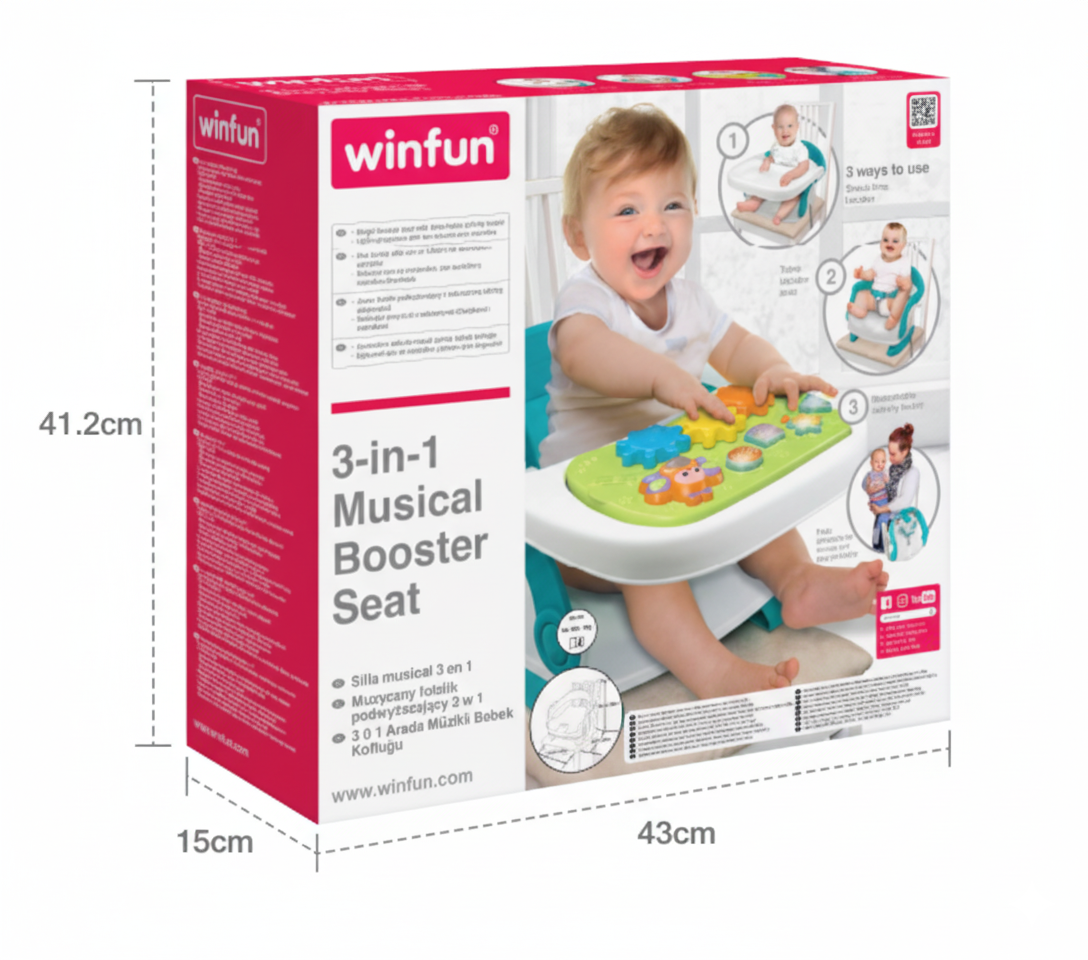 El asiento elevador brillante de Winfun es la solución perfecta para acompañar a tu pequeño en cada etapa, desde la hora del juego hasta las comidas familiares. Con un diseño práctico y colorido, combina entretenimiento, comodidad y seguridad en un solo producto. Ideal para usar en casa o llevar de viaje gracias a su estructura plegable y liviana.