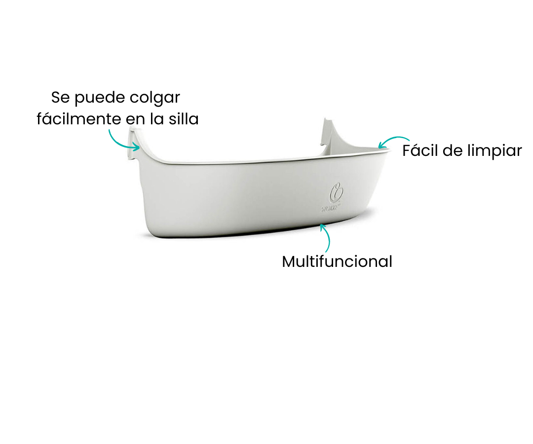 El accesorio de almacenamiento Tripp Trapp es un complemento práctico y versátil que se acopla a la silla Tripp Trapp para brindar a tu bebé un espacio adicional para guardar sus cosas esenciales. Este compartimento inteligente no solo mantiene ordenada la silla, sino que también se convierte en un divertido centro de actividades a medida que tu hijo crece.