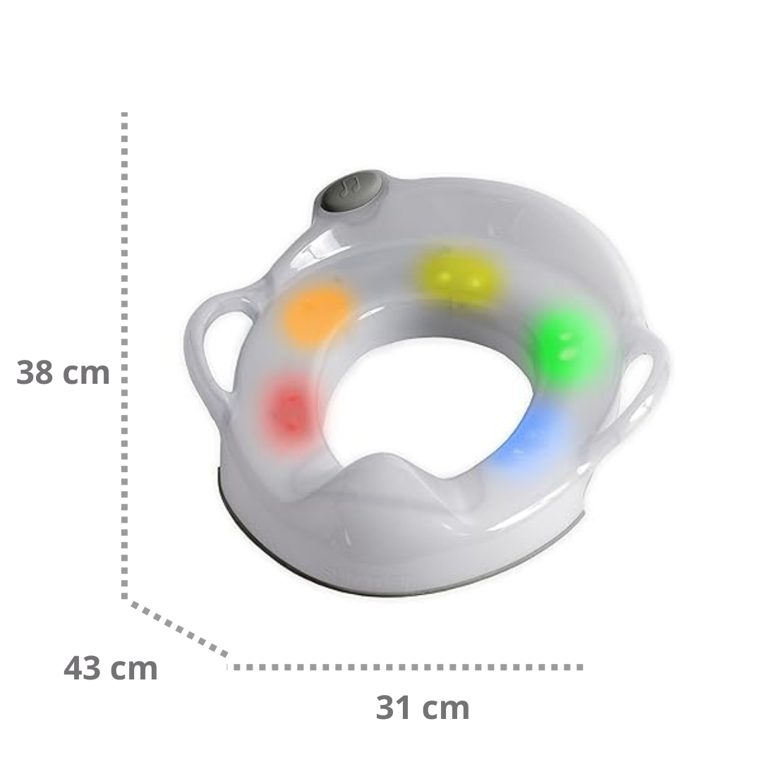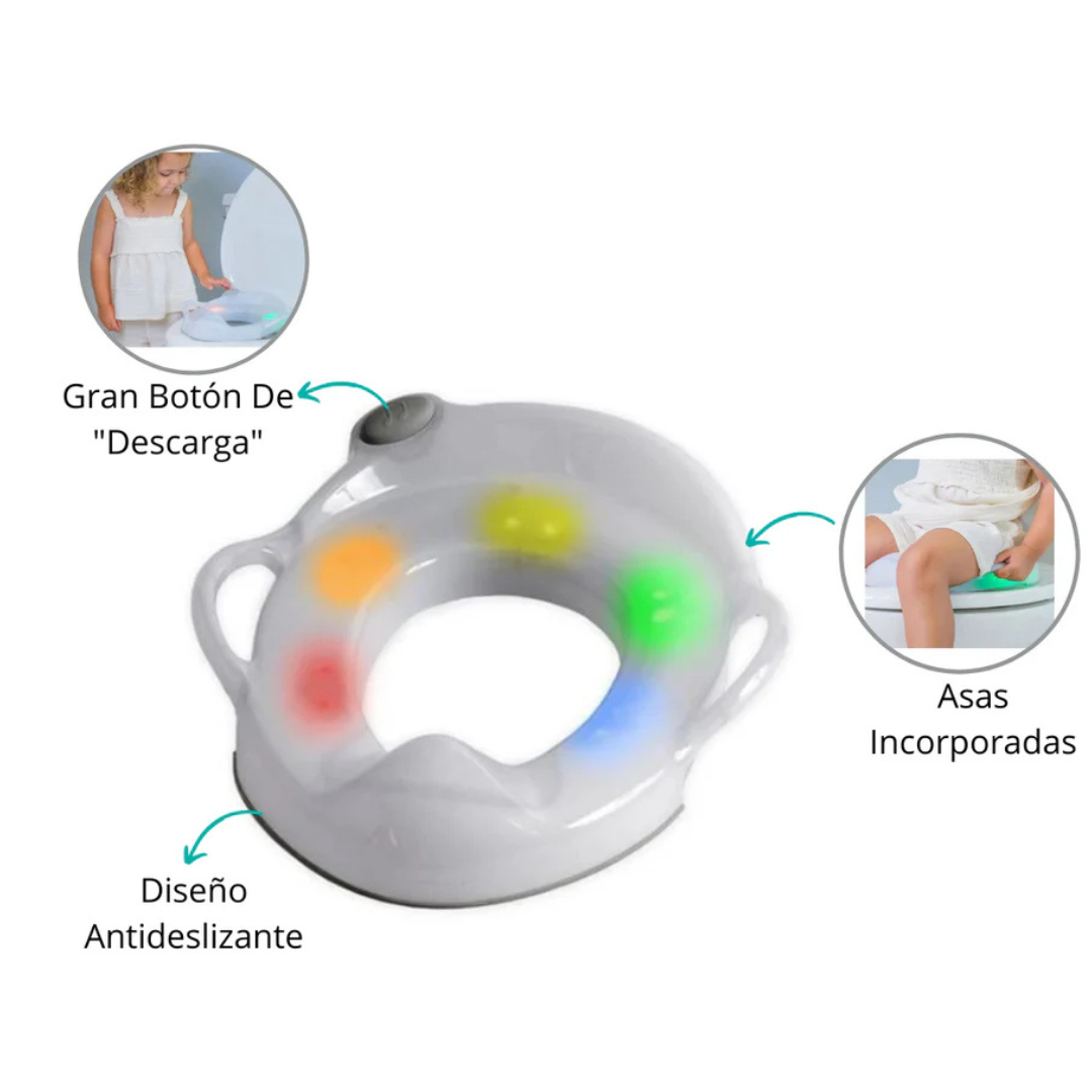 ¡Ilumina el camino hacia el éxito del entrenamiento para ir al baño con el anillo iluminado y canciones de Summer® My Size!® Este adorno transforma casi cualquier inodoro para adultos de tamaño estándar en el ajuste perfecto para tu pequeño. Contorneado para proporcionar un ajuste seguro y cómodo, el anillo cuenta con luces y canciones que hacen que el proceso sea divertido y atractivo. Ideal para motivar a los niños y hacer que el entrenamiento para ir al baño sea una experiencia positiva y alegre.