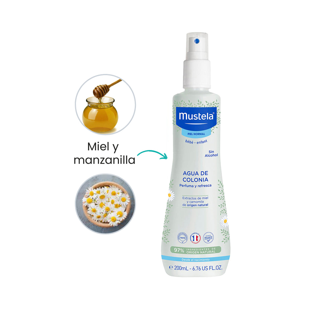 El agua de colonia especialmente diseñada para bebés y niños desde el nacimiento. Con una fórmula suave y segura, libre de alcohol y enriquecida con extractos naturales de miel y manzanilla, refresca y perfuma la piel delicada de tu pequeño con total seguridad.