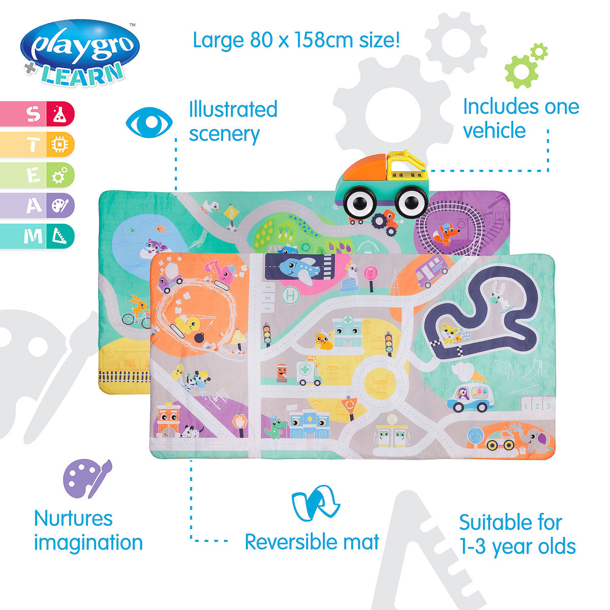¡Cada día es un día ideal para conducir! ¿Exploro las calles de la ciudad o los espacios abiertos del campo? ¡Con nuestra colchoneta reversible Jumbo City to Country, todo es posible!