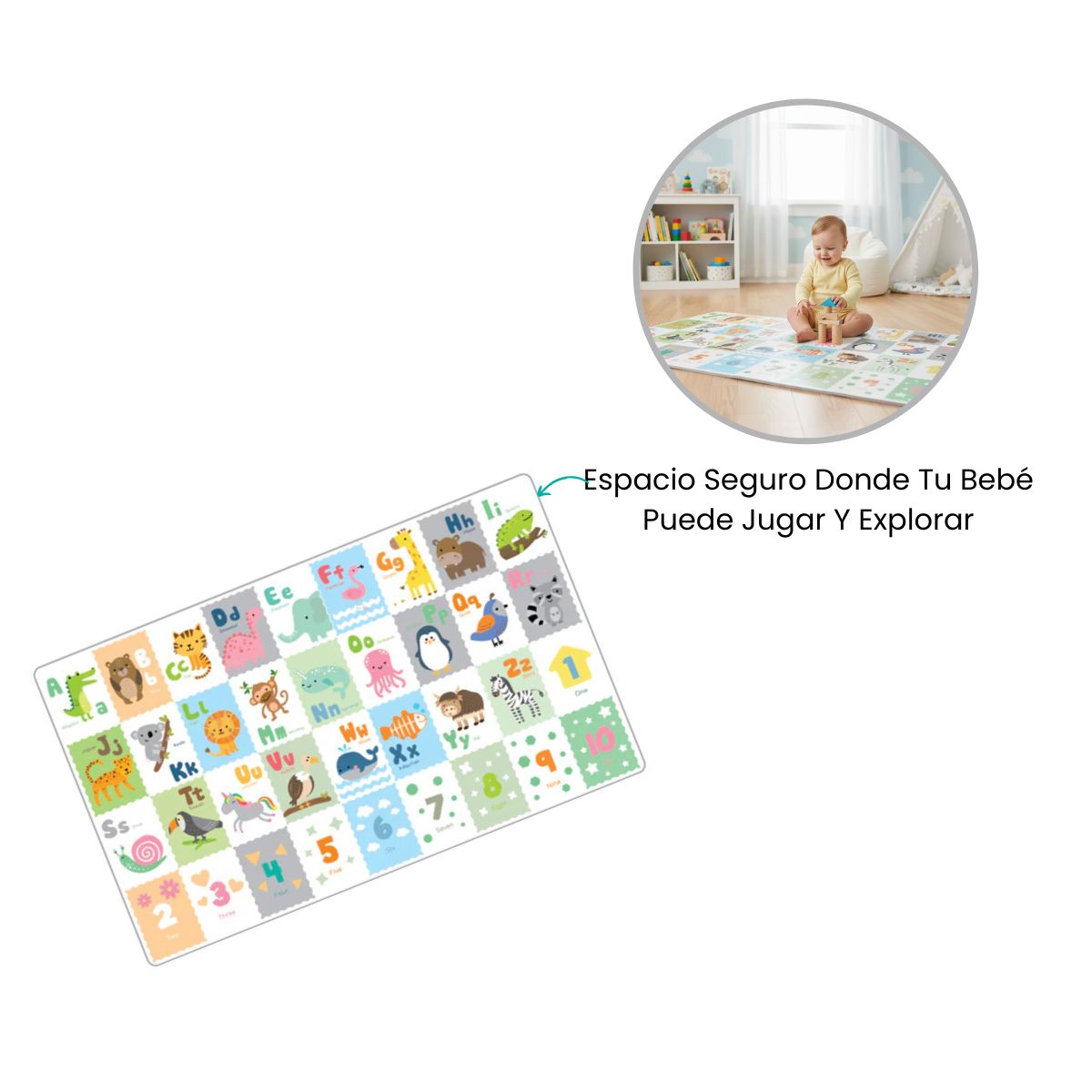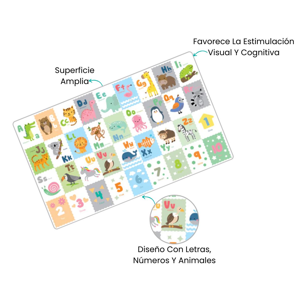Con ilustraciones de letras, números y animales, este tapete favorece la estimulación sensorial y el desarrollo cognitivo. Cada sección invita al bebé a reconocer patrones y fortalecer la curiosidad natural. Su diseño colorido mantiene el interés y fomenta el aprendizaje a través del juego. Perfecto para actividades en el suelo. Una herramienta práctica para aprender de forma didáctica y divertida.