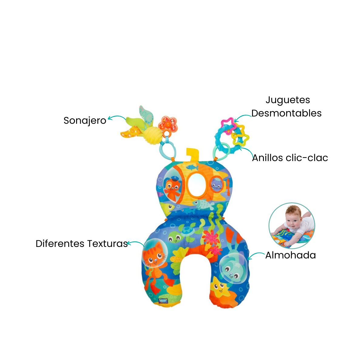 La almohada Tripicia Ocean Adventure está diseñada para ayudar a tu bebé a fortalecer los músculos del cuello y los hombros, logrando sentarse con confianza. Su diseño ergonómico ofrece comodidad y seguridad, mientras estimula el desarrollo motor durante el tiempo boca abajo. Con colores vibrantes y texturas suaves, convierte cada momento en una experiencia lúdica y divertida. ¡Ideal para acompañar los primeros hitos de tu pequeño sin esfuerzo!