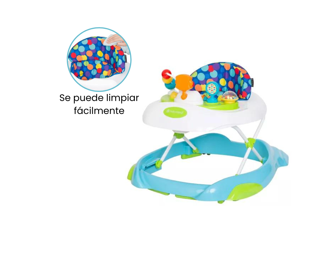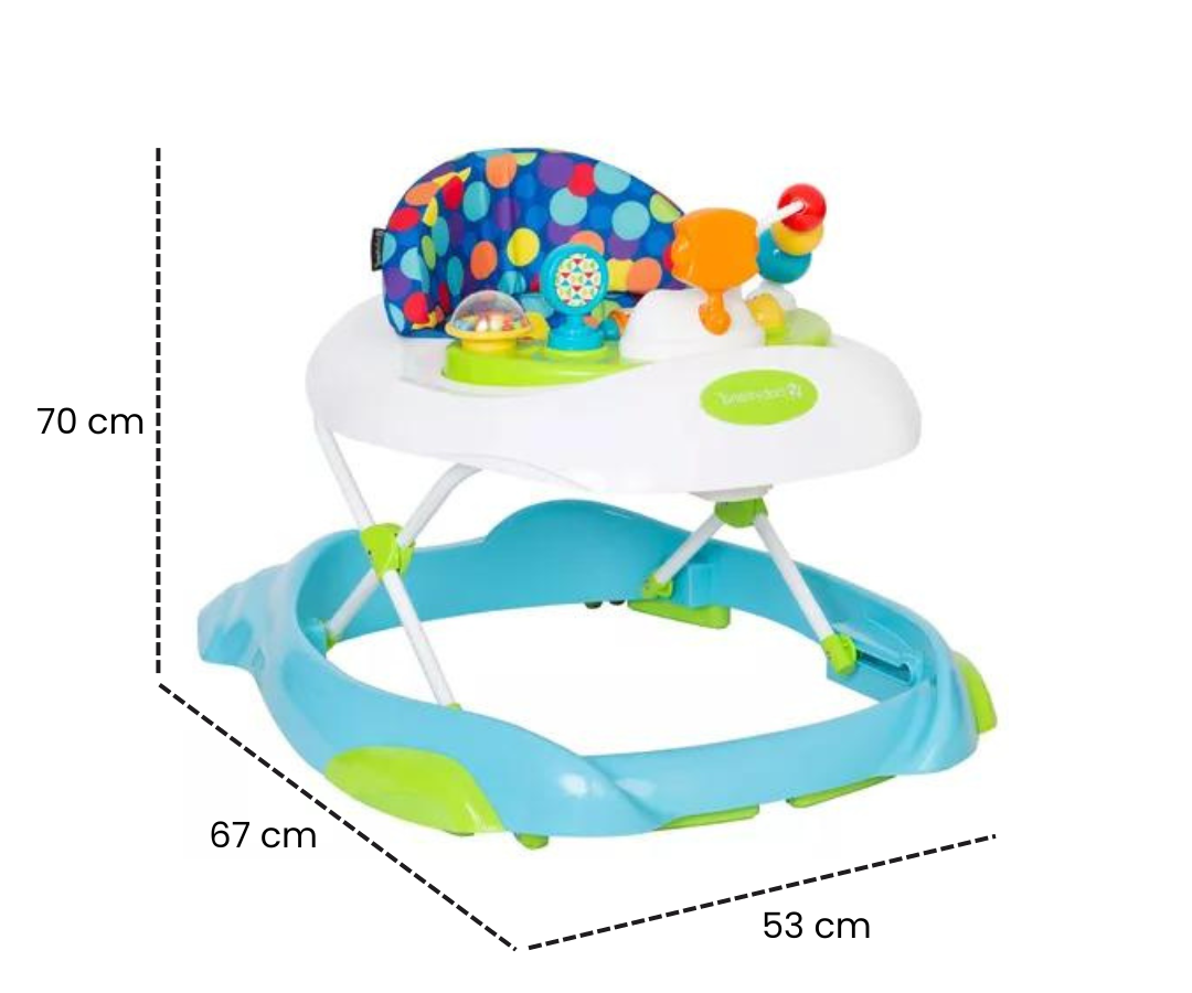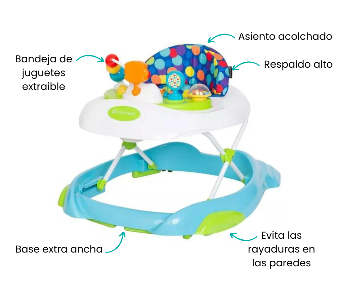 Este andador no solo ayuda a tu bebé a aprender a caminar, sino que también le ofrece un sinfín de oportunidades para divertirse y aprender con sus coloridos juguetes, sonidos, luces y melodías.