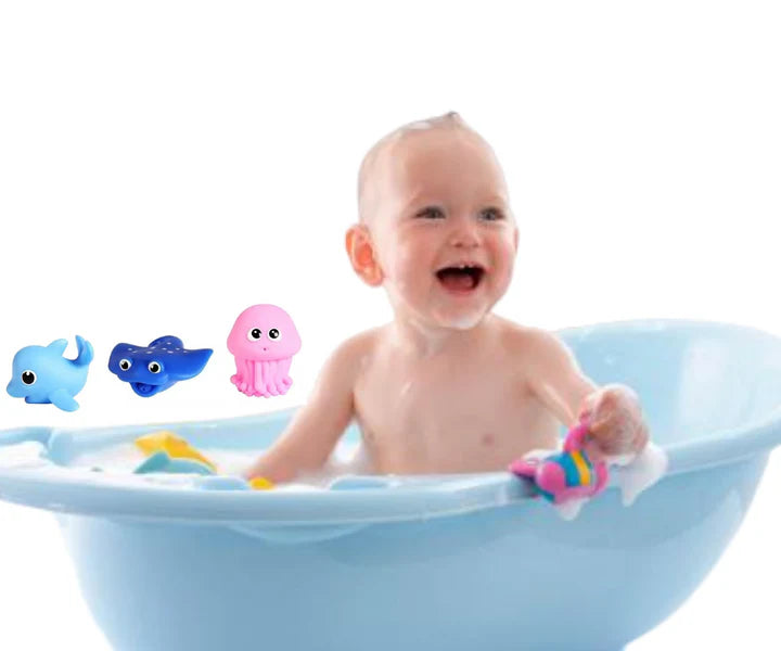 El baño se convierte en un escenario mágico donde las olas de la imaginación se mezclan con el agua. Los delfines de juguete nadan junto a tu pequeño, mientras las estrellas de mar se aferran a los bordes de la bañera como si fueran tesoros marinos. El pez payaso sonríe y juega a las escondidas entre las burbujas, mientras el pulpo de plástico extiende sus tentáculos en busca de nuevas travesuras.