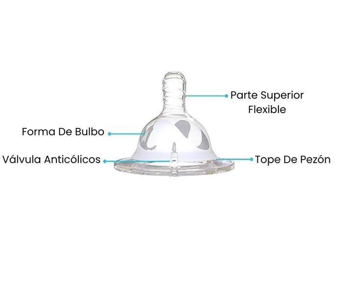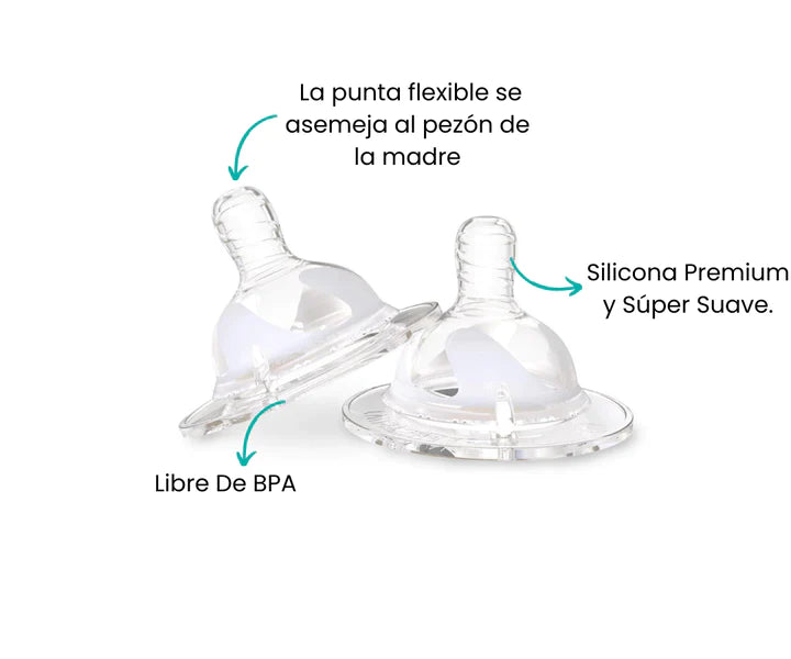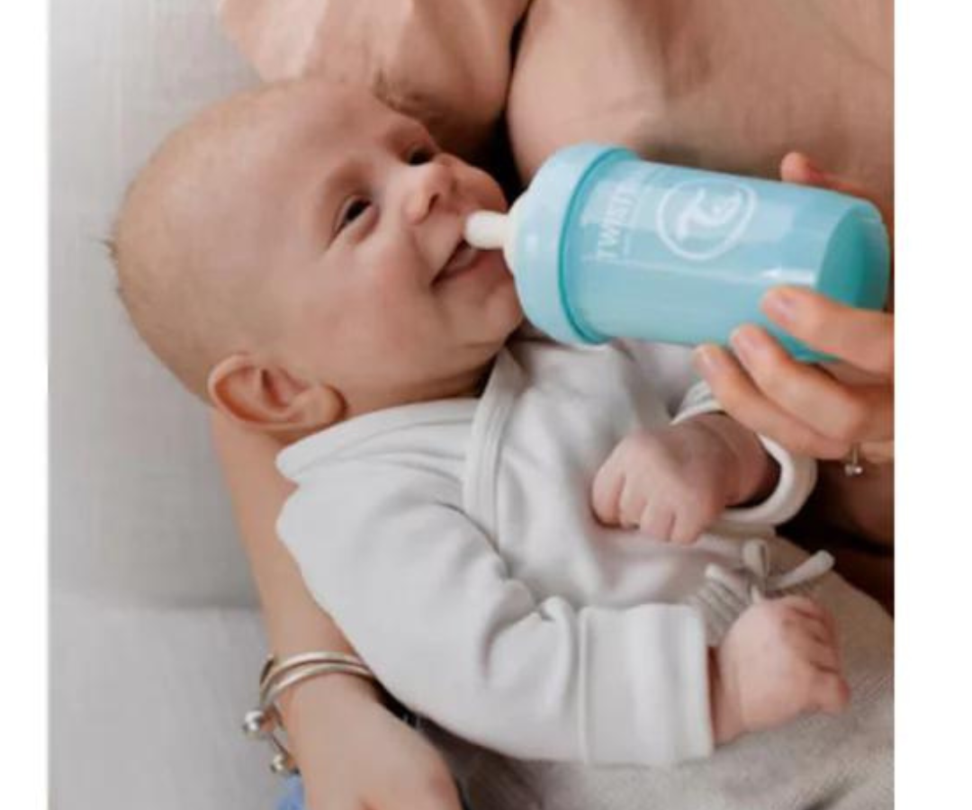 El diseño de la tetina Twistshake se asemeja al pecho de la madre, permitiendo que la transición entre la lactancia materna y la alimentación con biberón sea suave y segura. La punta flexible permite mantener el comportamiento de alimentación natural del bebé. La válvula anticólicos entrega un flujo uniforme. Para garantizar que el bebé se apoye correctamente, la parte inferior de la tetina es de forma curva y suave.