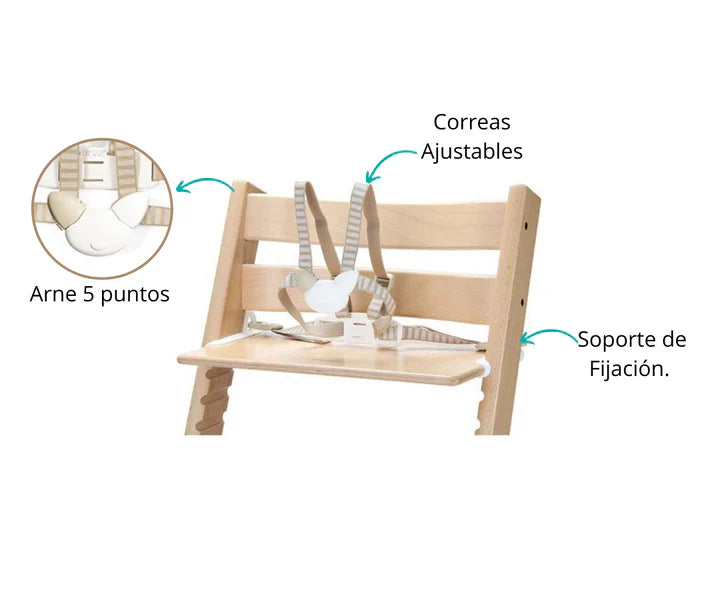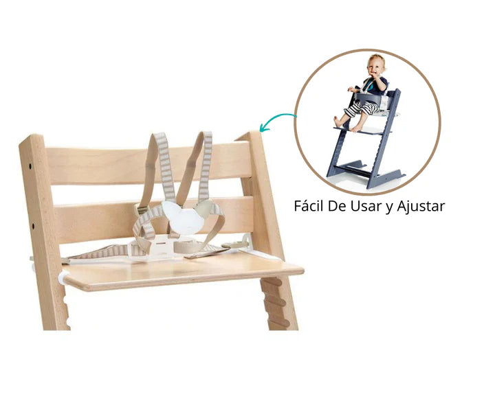 La hora de la comida será un momento seguro y cómodo tanto para ti como para tu pequeño. Él disfrutará de sus alimentos sin incomodidad, mientras tú podrás estar tranquilo acompañándolo. Con el arnés diseñado para la silla Tripp Trapp Baby Set, puedes adaptarlo fácilmente al asiento principal del Tripp Trapp. Esto asegura que tu hijo esté bien sujeto y cómodo durante las comidas, permitiéndote disfrutar de estos momentos juntos con total tranquilidad y confianza en su seguridad.