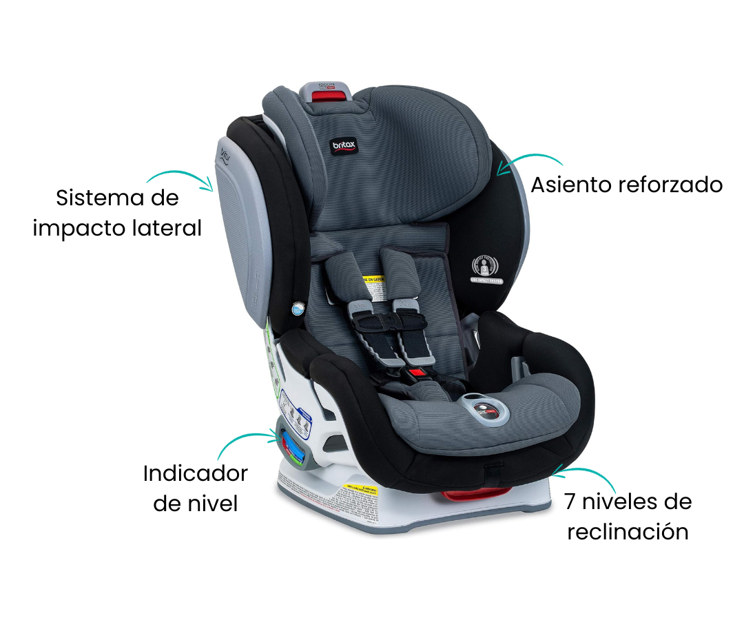 • Britax Seguridad: marco de acero, zona arrugada SafeCell y correa patentada en forma de V; 3 capas de protección contra impactos laterales rodean la cabeza, el cuello y el torso de tu hijo