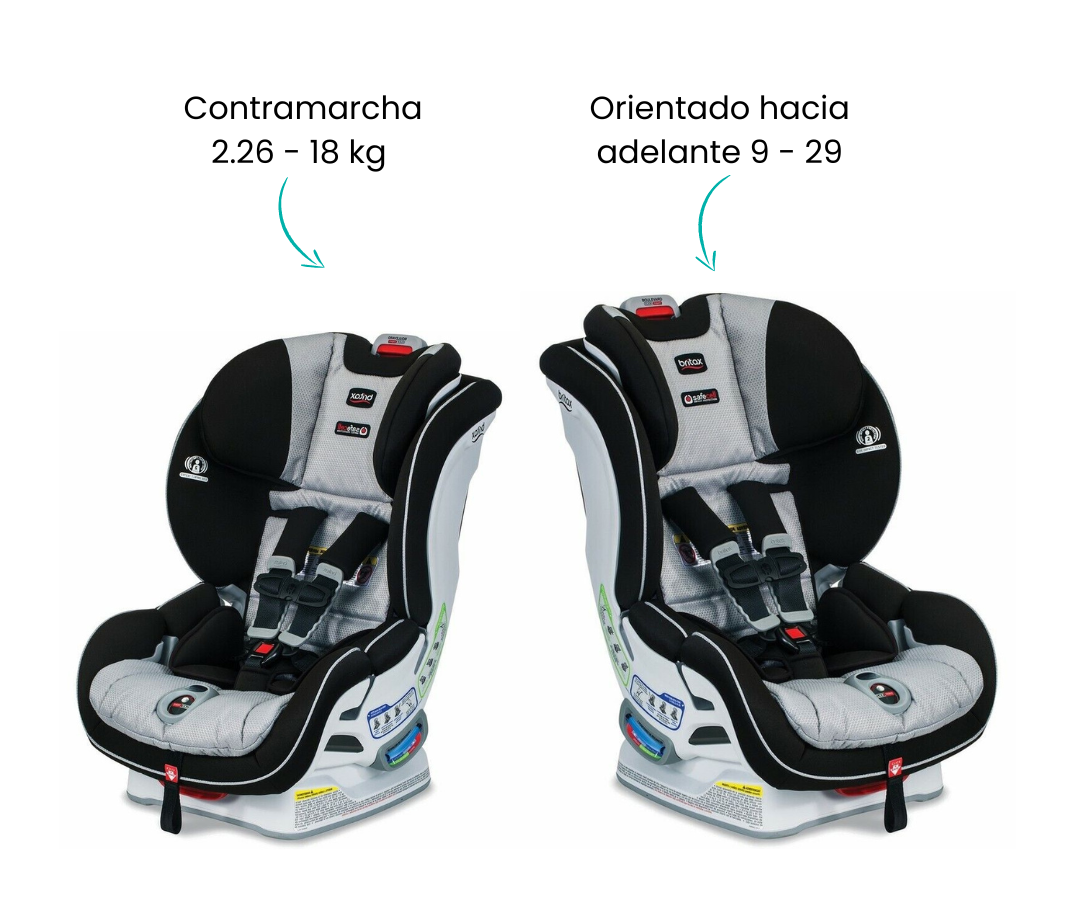 Britax recomienda que los niños viajen mirando hacia atrás hasta el peso o la altura más altos.