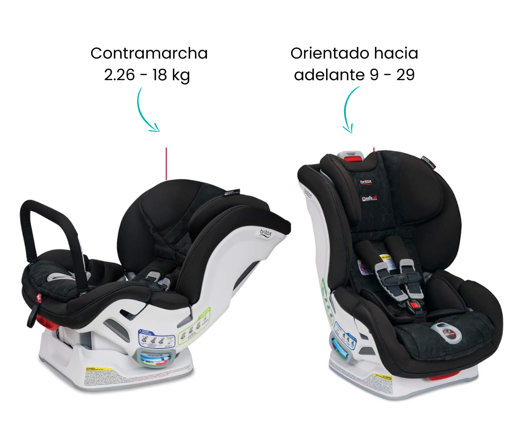 Britax recomienda que los niños viajen mirando hacia atrás hasta el peso o la altura más altos.