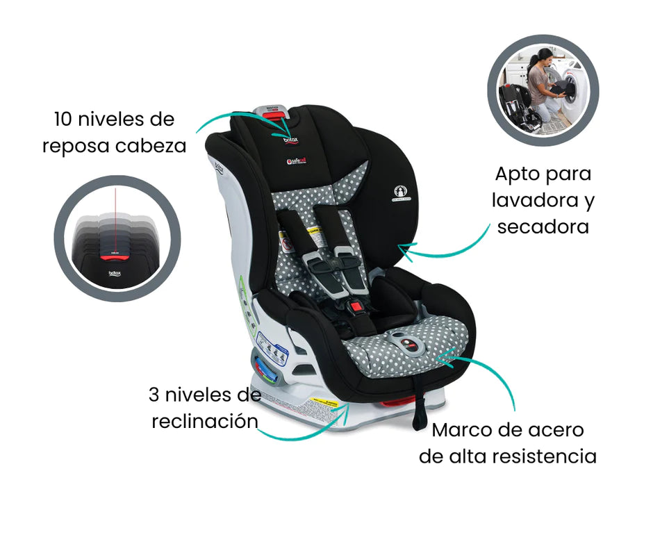 pasa fácilmente de mirar hacia atrás a mirar hacia adelante. Cuenta con la tecnología ClickTight para una instalación sin problemas y una cubierta SafeWash®