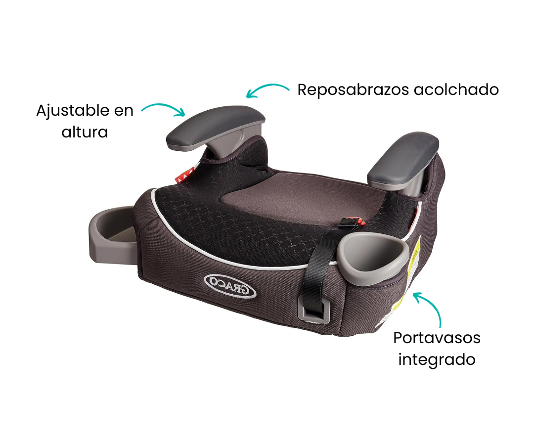 Asiento elevador diseñado para brindar seguridad y comodidad a los pequeños aventureros de 40 a 100 libras y hasta 57 pulgadas de altura. Su sistema de cierre es de ajuste frontal con una sola mano y se asegura al asiento del vehículo de manera fácil y rápida.