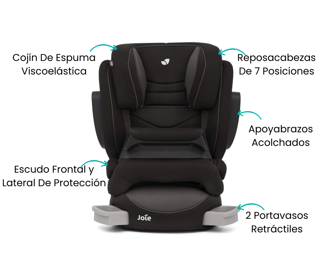 Este asiento esta diseñado para niños de 1 a 12 años y se caracteriza por tener un sistema de escudo frontal, que absorbe la energía del impacto y la distribuye de manera uniforme para reducir el riesgo de lesiones en el cuello y el pecho de tu hijo. Además está equipado con protección contra impactos laterales, lo que brinda una seguridad adicional en caso de colisión lateral.