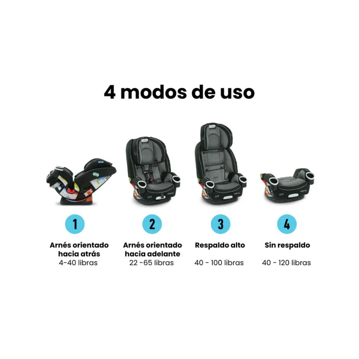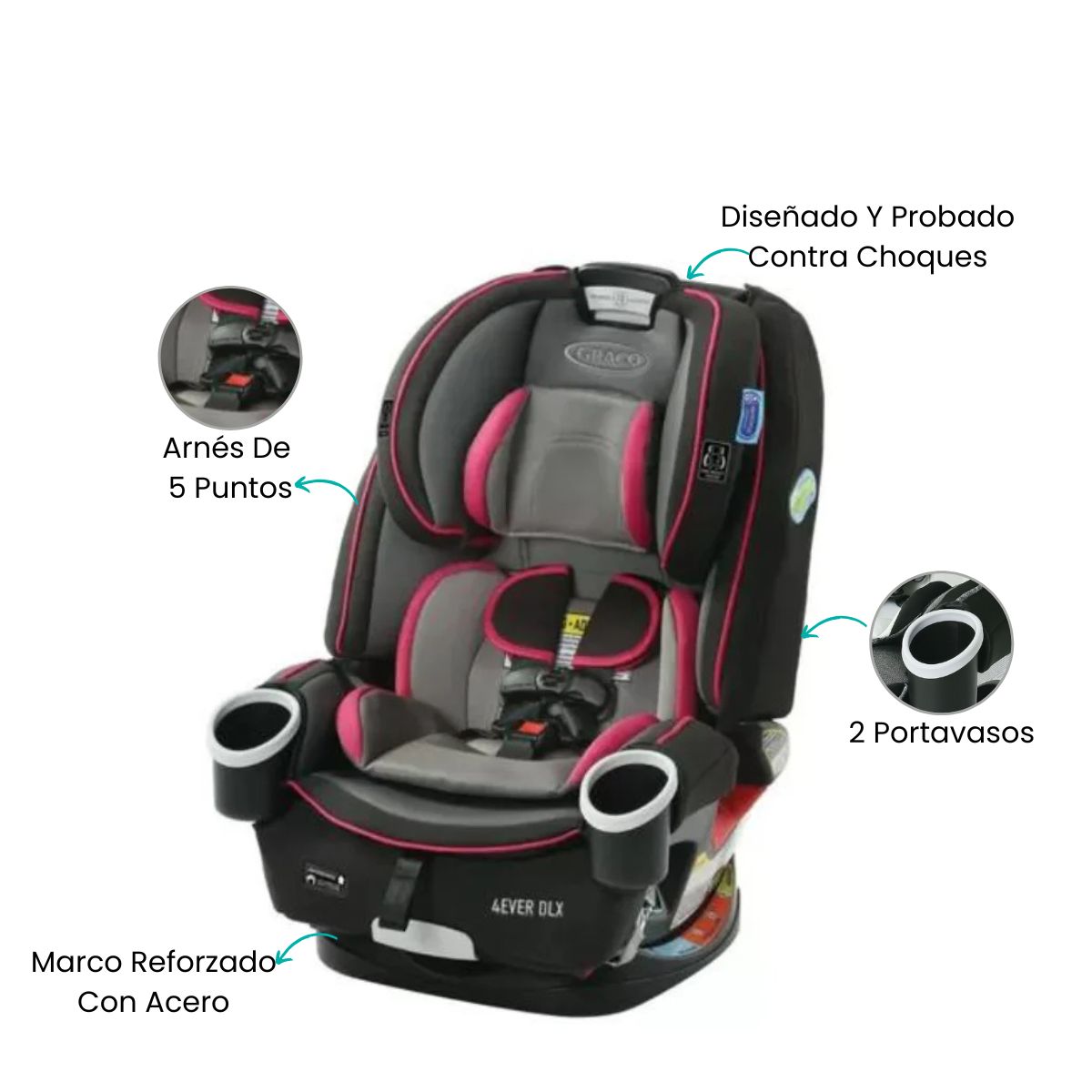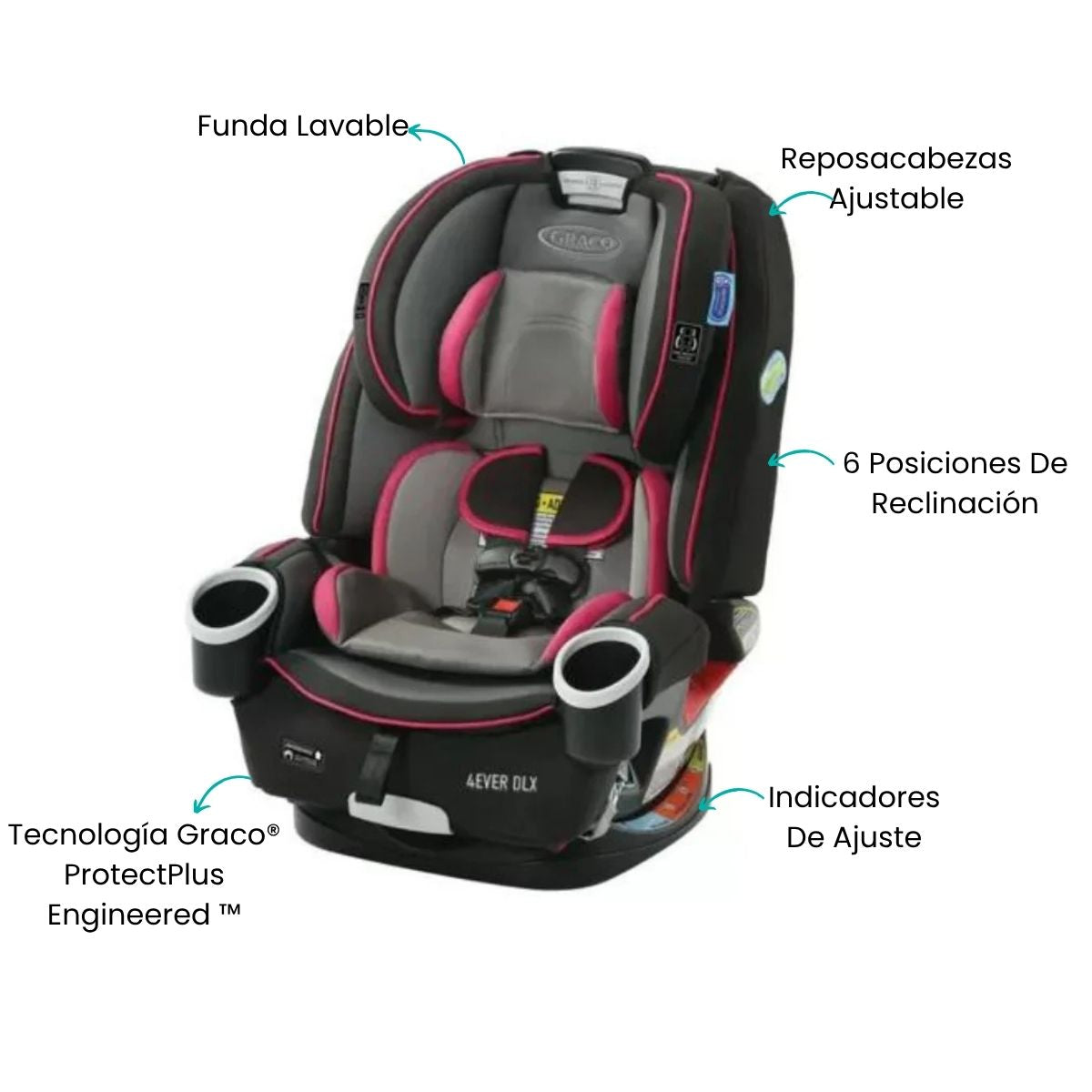 La silla de auto Graco® 4Ever® DLX 4 en 1 está diseñada para acompañar a tu hijo durante más de 10 años de uso continuo, adaptándose a cada etapa de crecimiento con total seguridad y confort. Su sistema modular permite transformarla fácilmente de silla con arnés orientada hacia atrás a silla orientada hacia adelante, elevador con respaldo alto y finalmente elevador sin respaldo, siendo la única silla que necesitarás desde los primeros meses hasta la niñez.