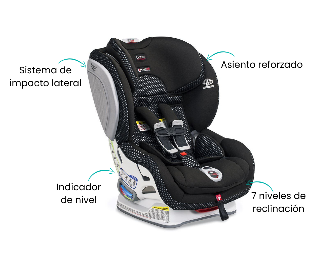 • Britax Seguridad: marco de acero, zona arrugada SafeCell y correa patentada en forma de V; 3 capas de protección contra impactos laterales rodean la cabeza, el cuello y el torso de tu hijo