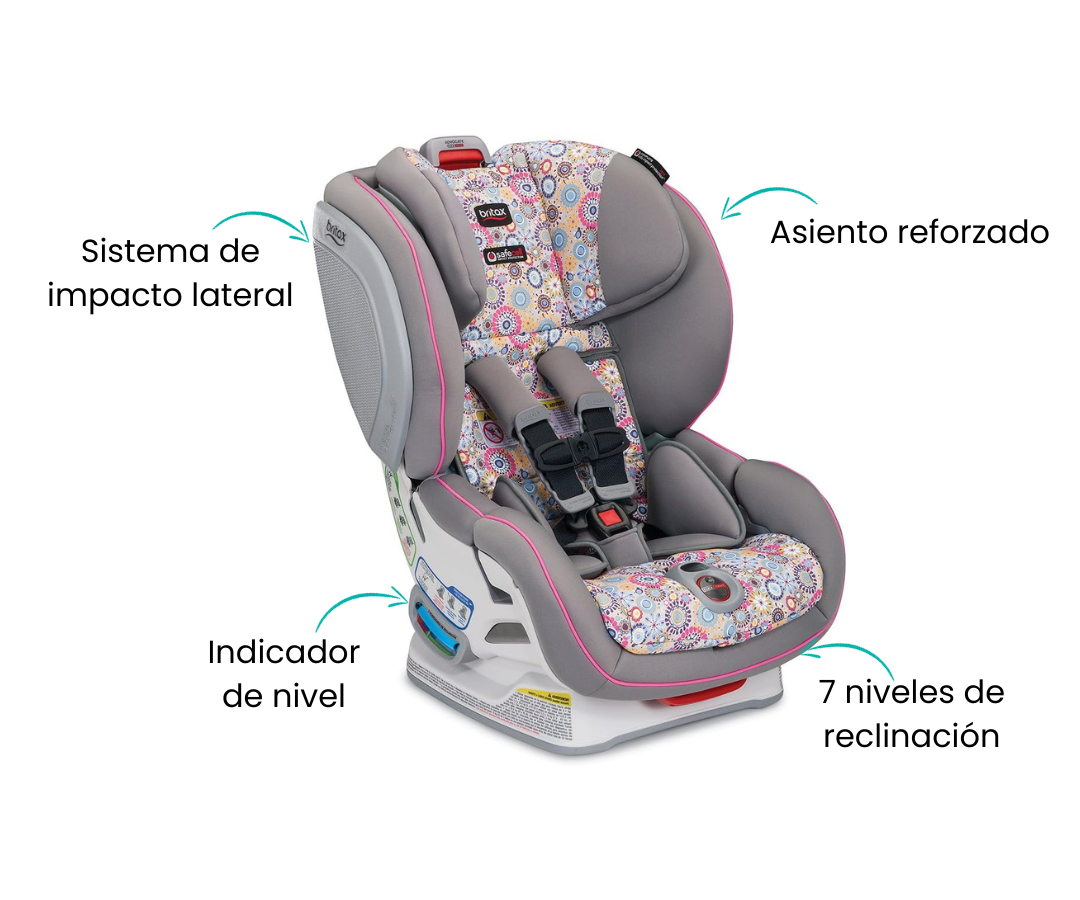 • Britax Seguridad: marco de acero, zona arrugada SafeCell y correa patentada en forma de V; 3 capas de protección contra impactos laterales rodean la cabeza, el cuello y el torso de tu hijo