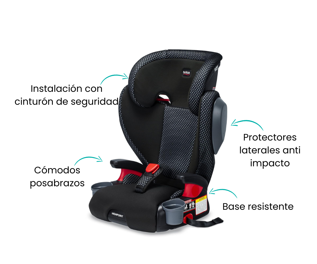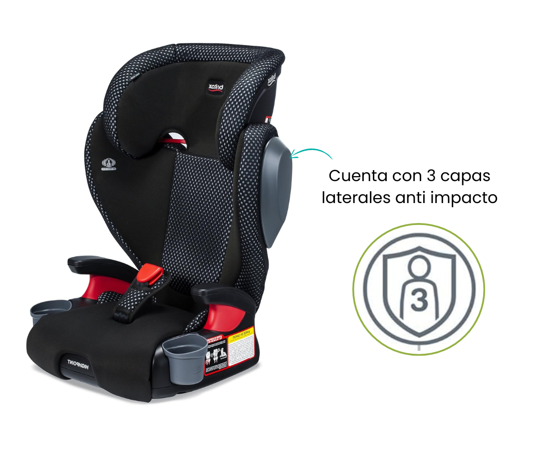 Este asiento elevador crece con tu hijo, gracias al reposacabezas de ajuste rápido con 10 posiciones, que se adapta fácilmente para acompañar su crecimiento. La seguridad es primordial, y el Highpoint cuenta con tres capas de protección contra impactos laterales, absorbiendo las fuerzas de choque y manteniendo a tu hijo seguro en todo momento.