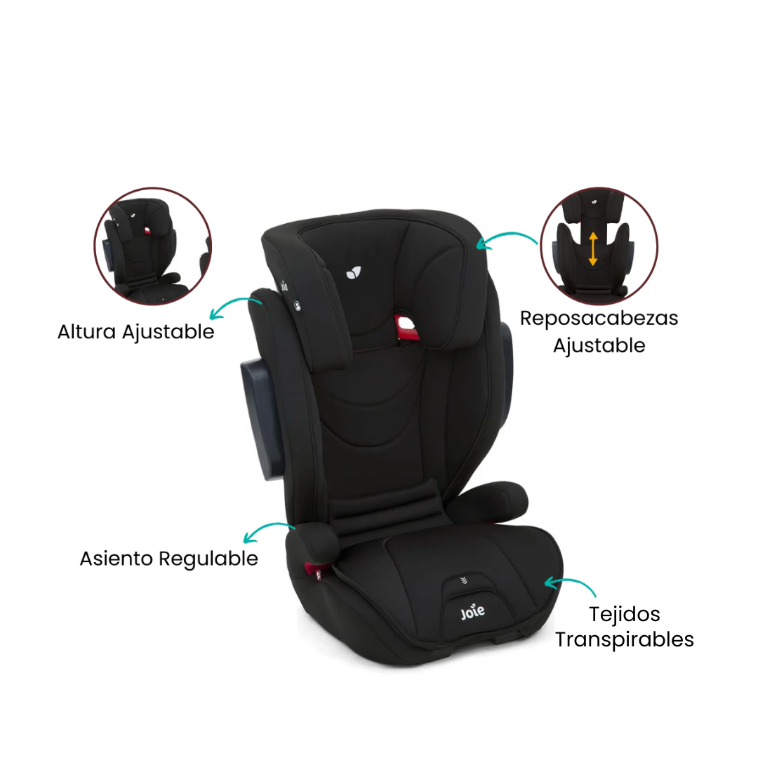 Reposacabezas de altura regulable en 7 posiciones que se ajusta con una sola mano y se adapta a niños en crecimiento de todas las estaturas.