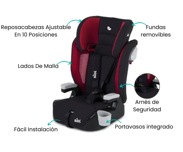 Con un arnés de cinco puntos para pequeños de 9 meses a 12 años, este elevador cuenta con un arnés de cinco puntos que proporciona una sujeción segura y confortable. Sabemos que la seguridad es tu prioridad y por eso hemos incorporado una protección total contra impactos laterales, garantizando una protección integral para tu pequeño desde la cabeza hasta las caderas, puedes estar tranquilo sabiendo que tu hijo está rodeado de una capa adicional de seguridad en caso de colisión.