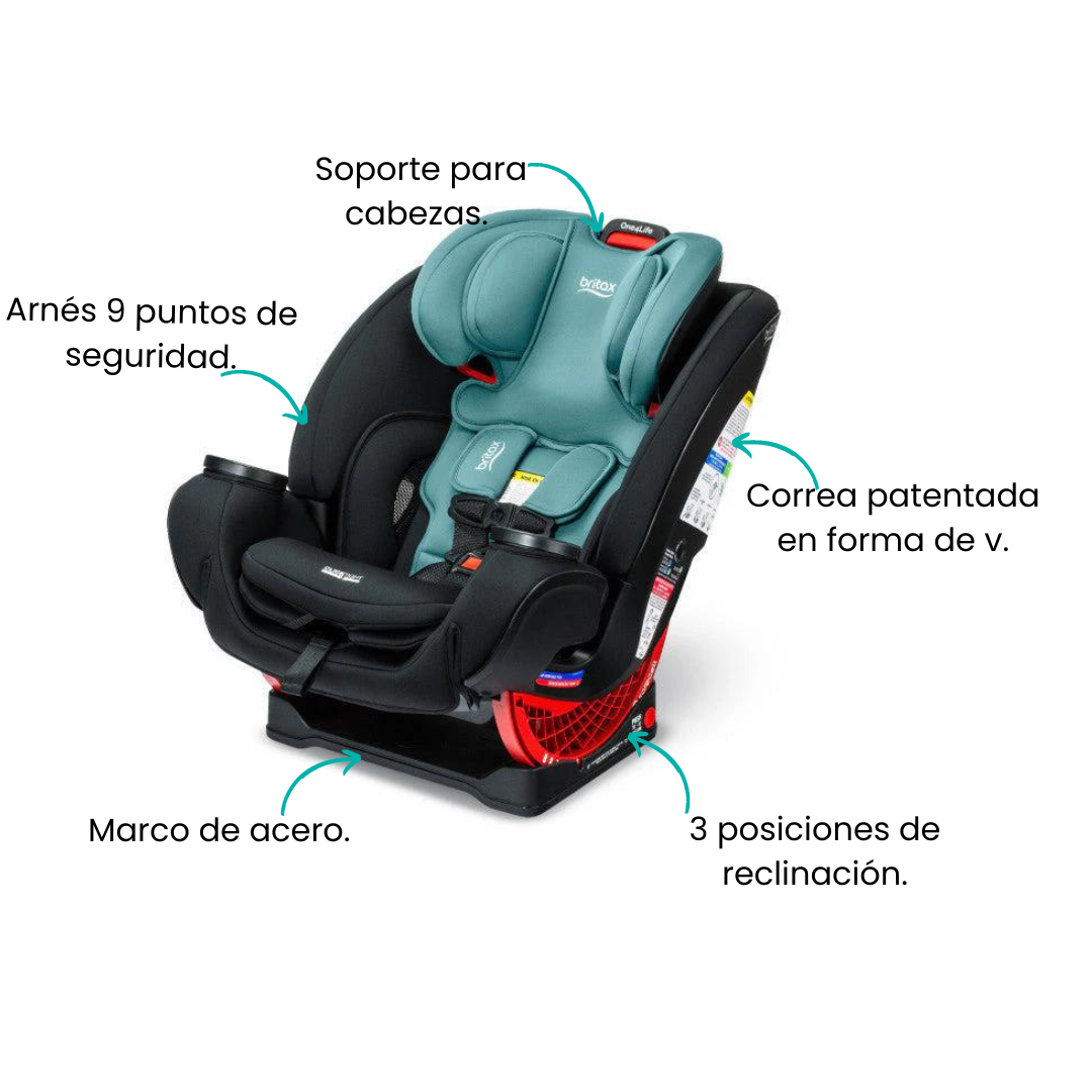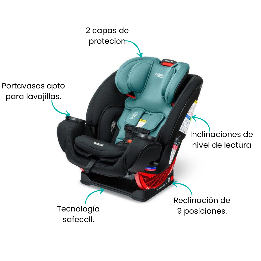 Este asiento para automóvil One4Life está equipado con un marco de acero de alta resistencia, una zona de deformación SafeCell y una correa patentada en forma de V. La carcasa protectora del asiento y el reposacabezas forrado de espuma ayudan a absorber la energía del impacto y están diseñados para ayudar a mantener seguros la cabeza, el cuello y el cuerpo de tu hijo. Disfrute de viajes seguros desde el nacimiento de tu hijo grande con el asiento para automóvil todo en uno Britax One4Life.