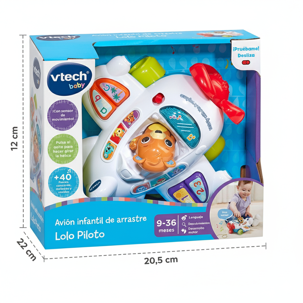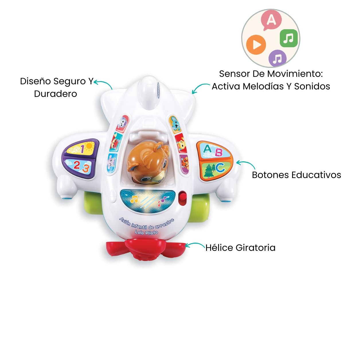 El avioncito interactivo para bebés +9 meses invita a los más pequeños a explorar el mundo desde el suelo con imaginación y movimiento. Colorido, resistente y fácil de manipular, este tierno avión con su capitán oso combina música, luces y aprendizaje para acompañar cada paso de tu bebé mientras desarrolla sus primeras habilidades motoras.