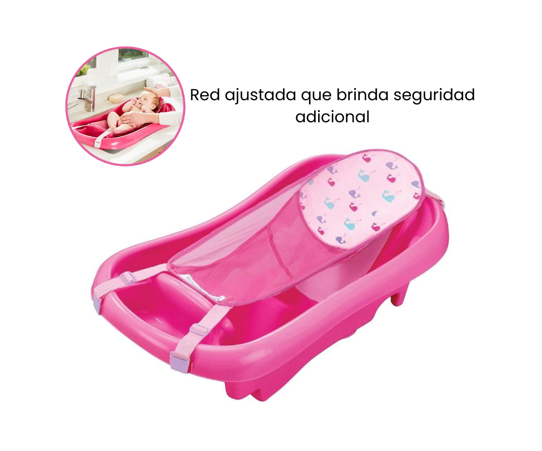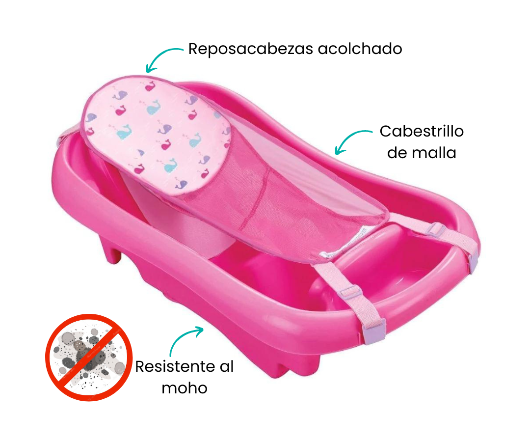 Con un diseño ergonómico, esta bañera se adapta fácilmente a lavabos simples o dobles. Las almohadillas resistentes al moho ofrecen un ambiente más limpio y saludable, mientras que el cabestrillo de malla con reposacabezas acolchado brinda un confort excepcional y un apoyo óptimo, incluso para los más pequeños.