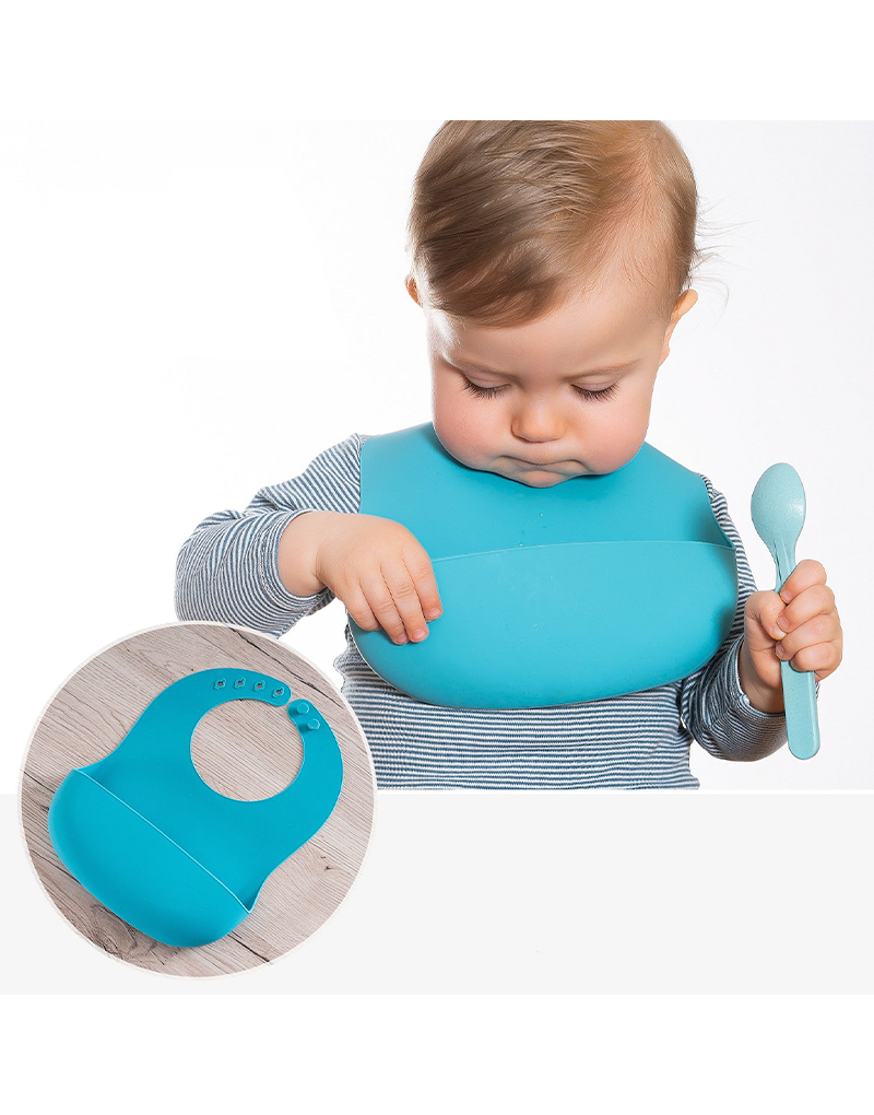 Babero de Silicona con bolsillo , resiste, impermeable y facil de lavar.