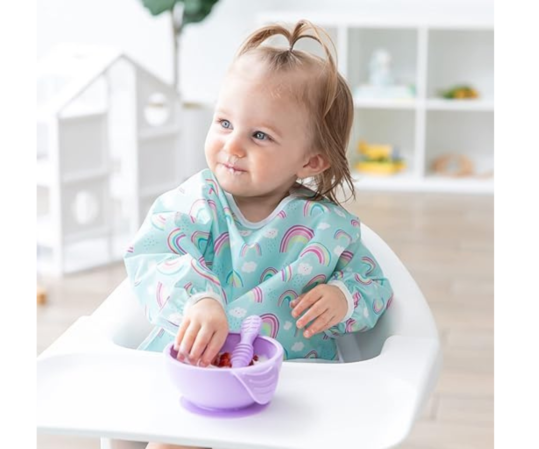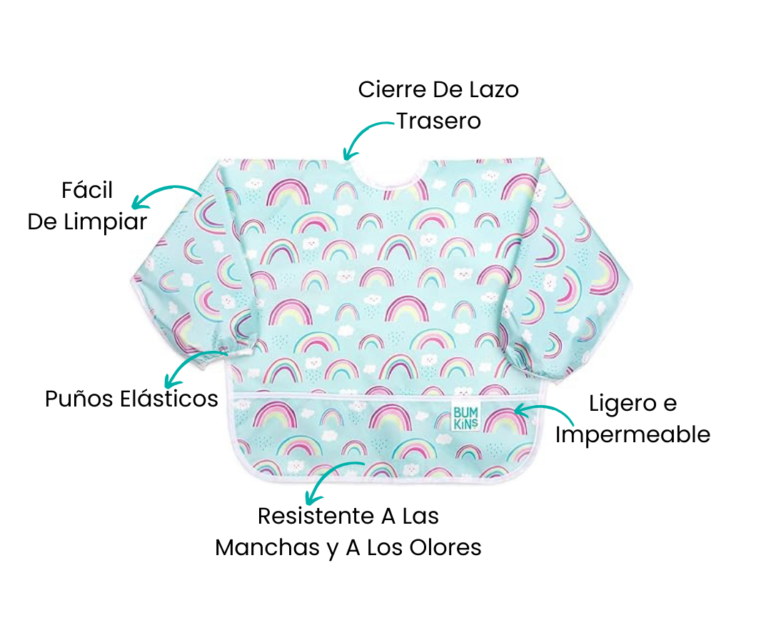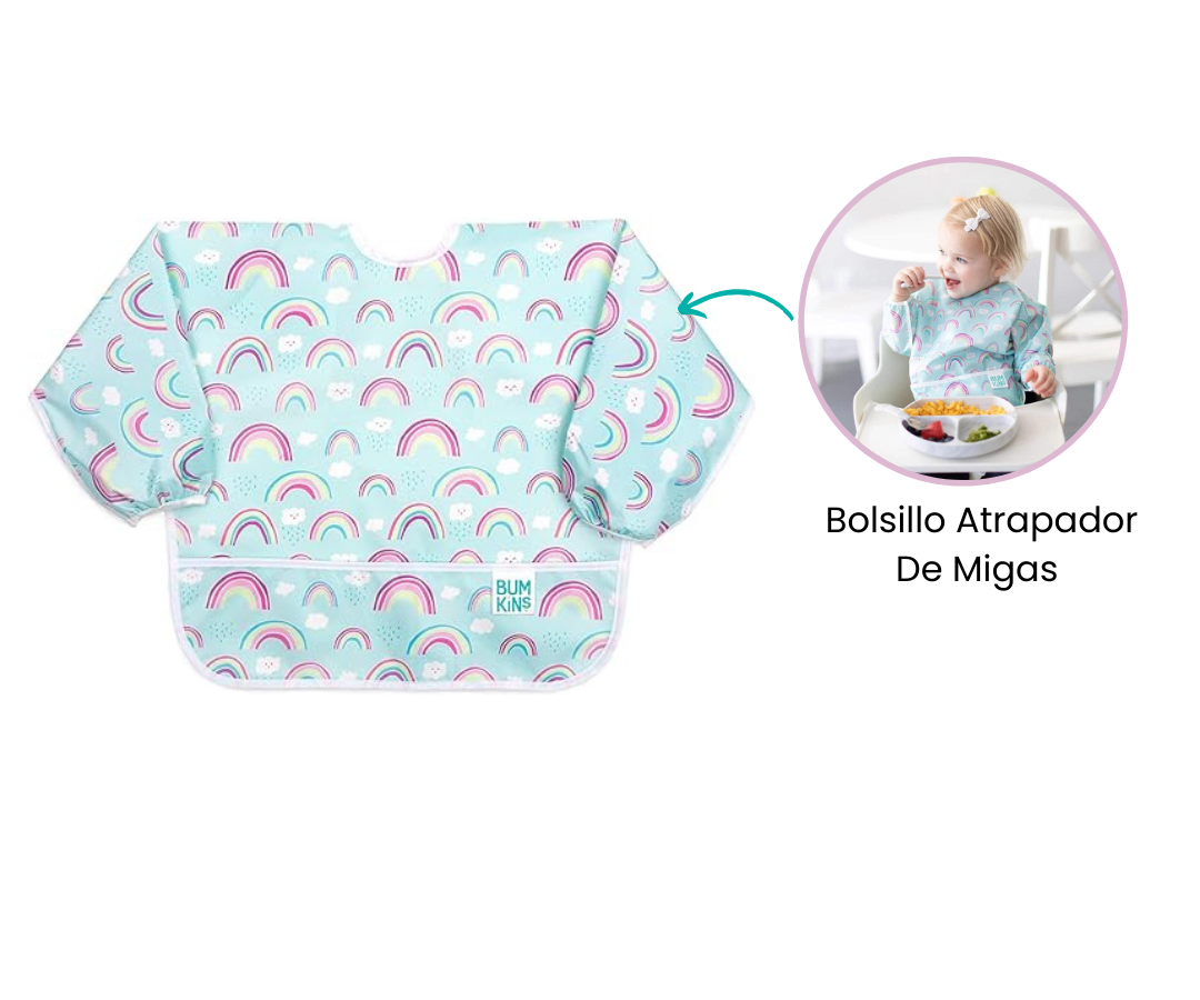 Perfecto para garantizar una hora de comida sin ensuciar, este babero cuenta con un recogedor de migas, así como mangas largas para proteger la ropa de tu pequeño de escupitajos, manchas o accidentes. Es esencial cuando tu hijo está comenzando con sólidos, brindando una solución práctica para mantenerlo limpio y cómodo durante las comidas. Con un diseño funcional y fácil de limpiar, este babero se convierte en un aliado indispensable para los padres ocupados.