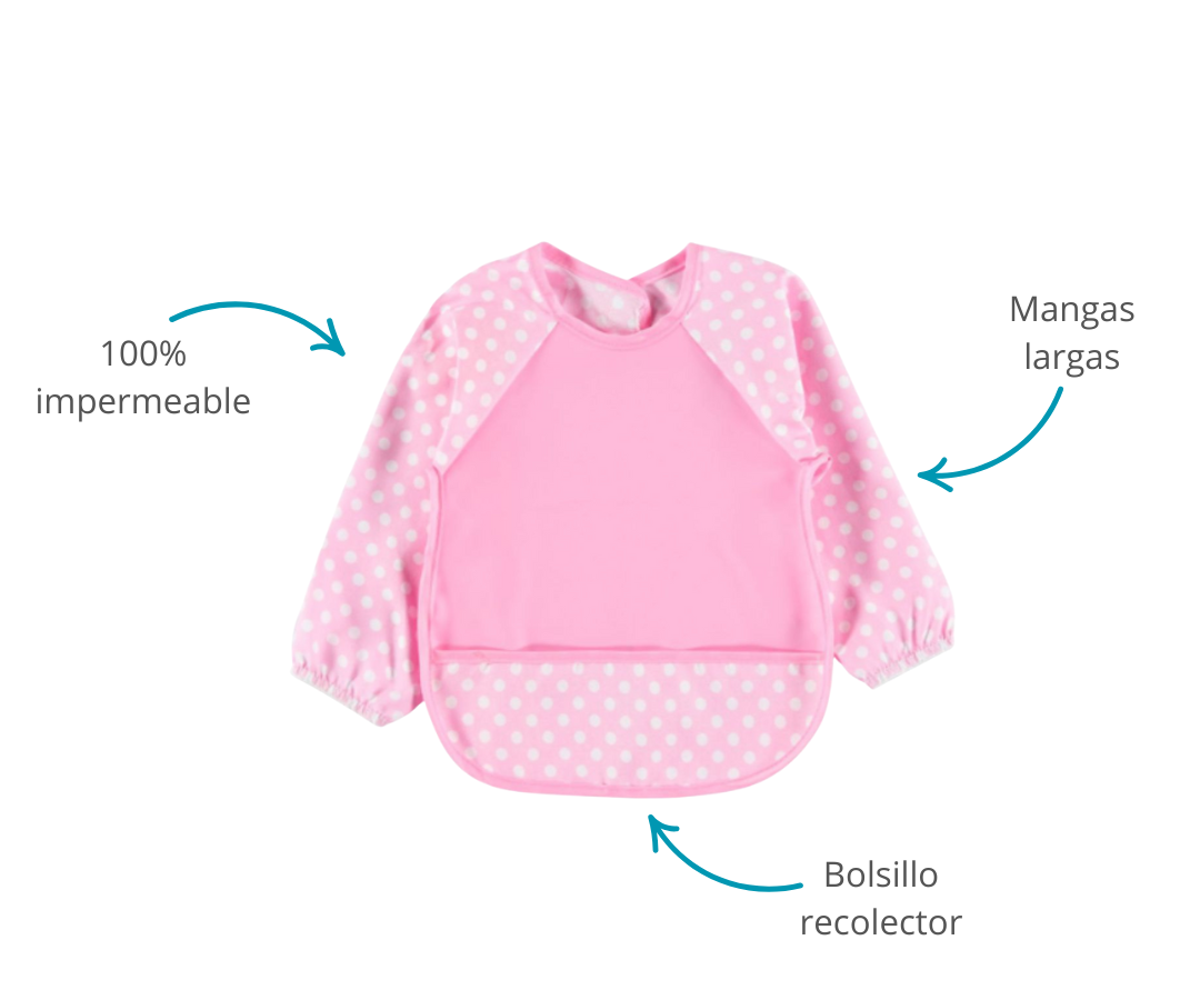 - Diseño Cómodo: Las mangas tienen elásticos en las muñecas para un ajuste seguro y cómodo que evita que la comida se cuele por los brazos. El cierre en la parte trasera es seguro y fácil de manejar para los padres, pero difícil de quitar para el bebé.