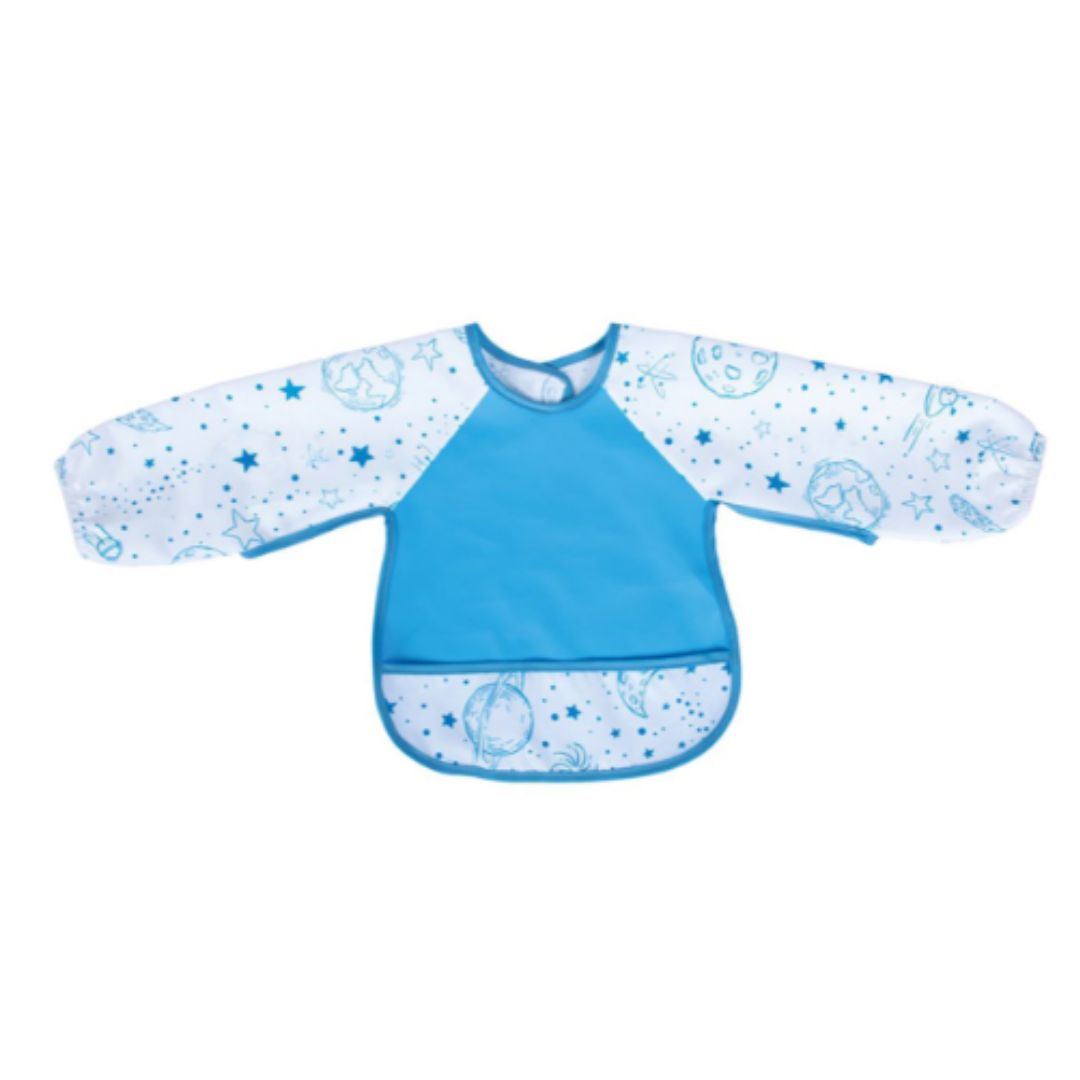 - Protección Completa: Diseñado con mangas largas y una amplia zona frontal, este babero protege eficazmente la ropa de tu bebé, cubriéndolo desde el cuello hasta la cintura y los brazos. Es perfecto para la introducción de alimentos sólidos, actividades con pintura, manualidades y juegos de mesa.