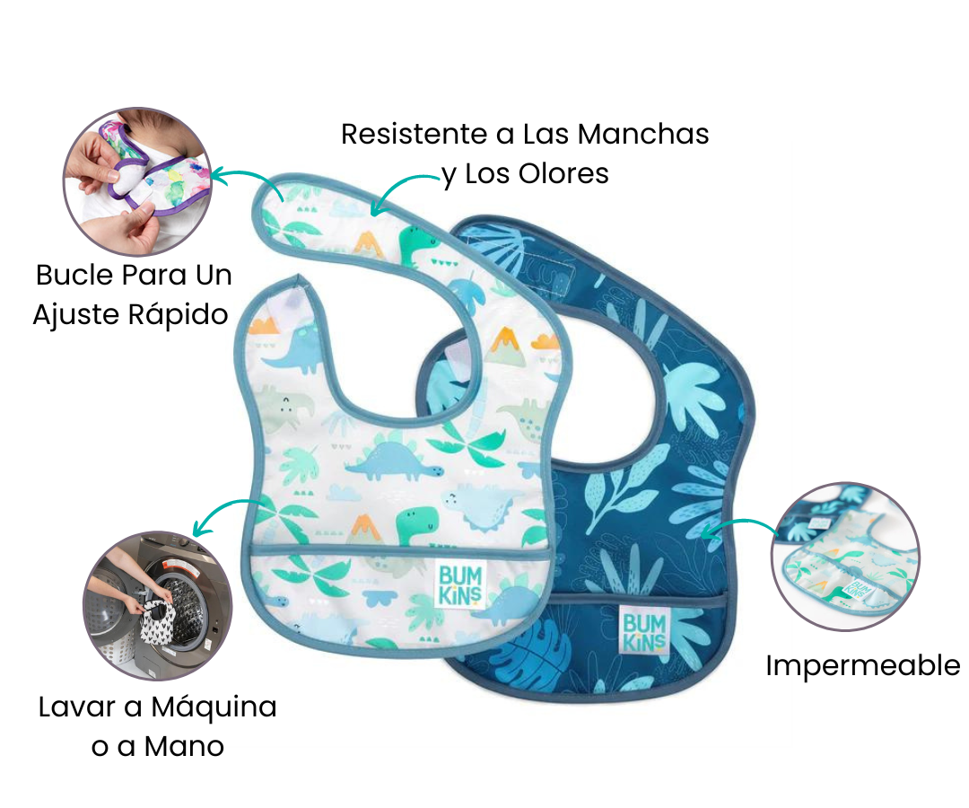 Los baberos de inicio te salvan del desorden. Perfecto para las primeras comidas del bebé, el babero de inicio se coloca sobre la parte posterior del hombro con gancho y bucle para un ajuste rápido, ajustable y a prueba de tirones. Estos baberos son esenciales para hacer que la alimentación sea más fácil y menos complicada, proporcionando una solución práctica para mantener a tu pequeño limpio y cómodo durante sus primeras experiencias con la comida.