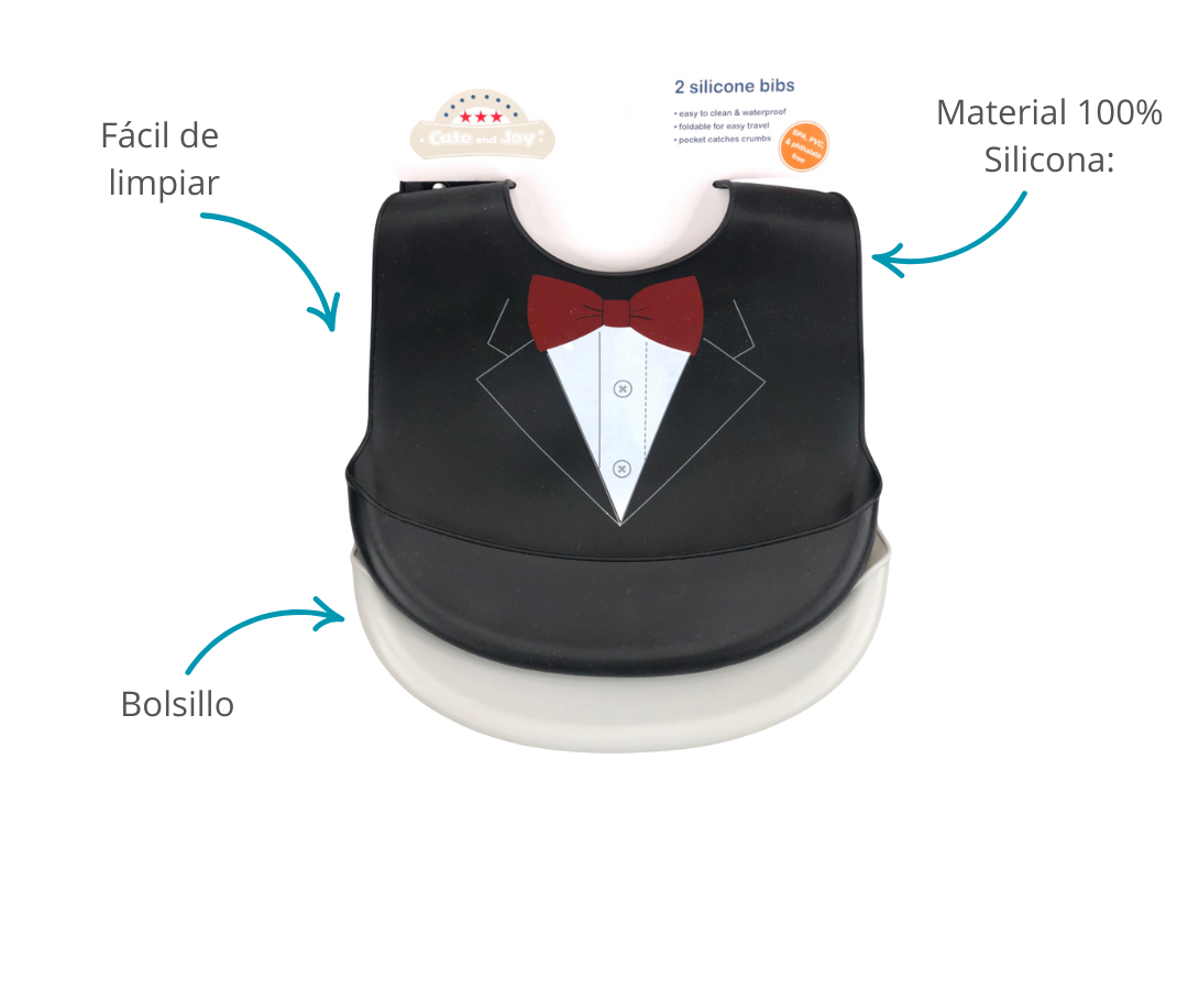 - Diseño Divertido y Atractivo: El set incluye dos baberos con diseños únicos y divertidos. Esto los convierte en un accesorio alegre para la hora de comer.