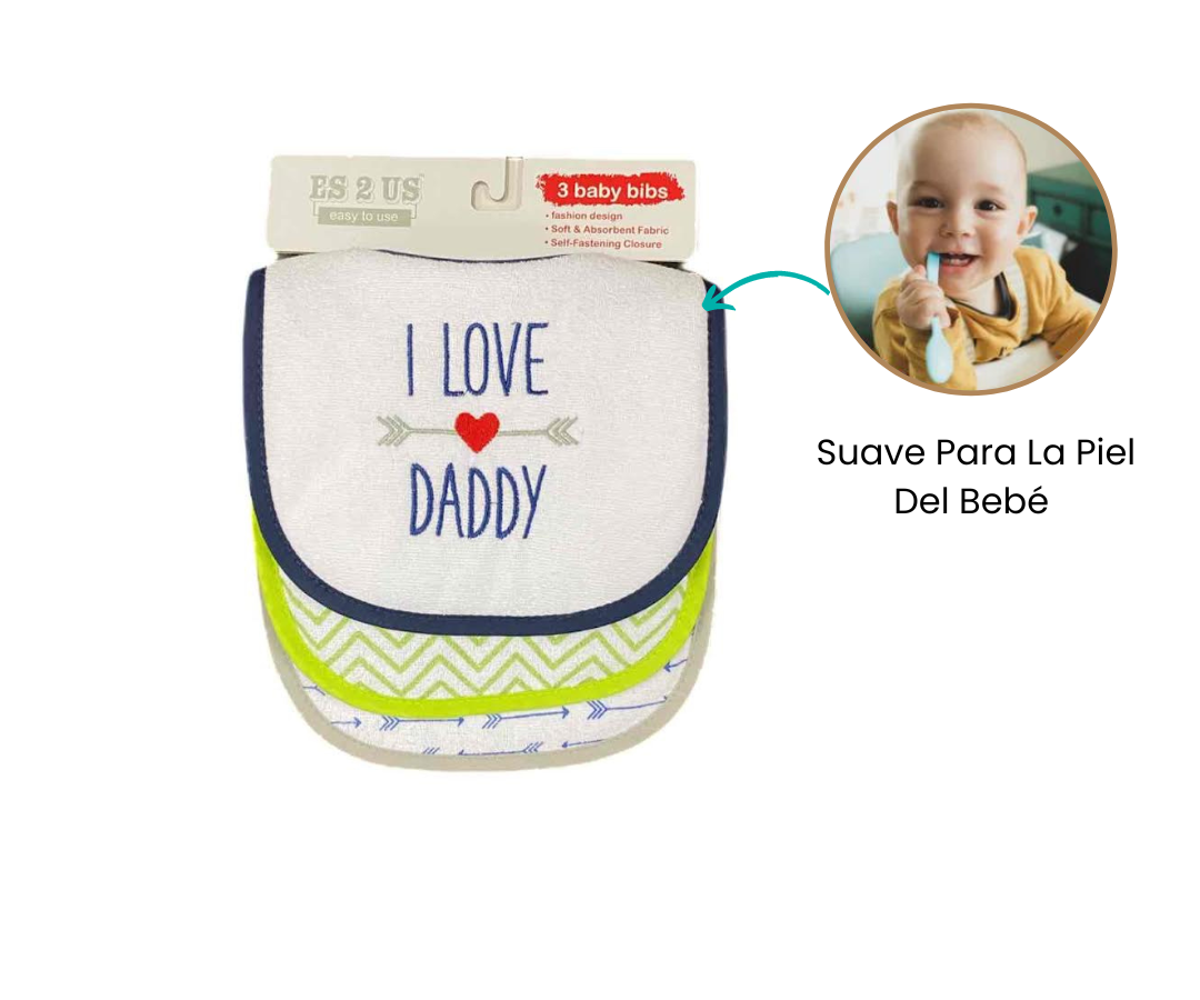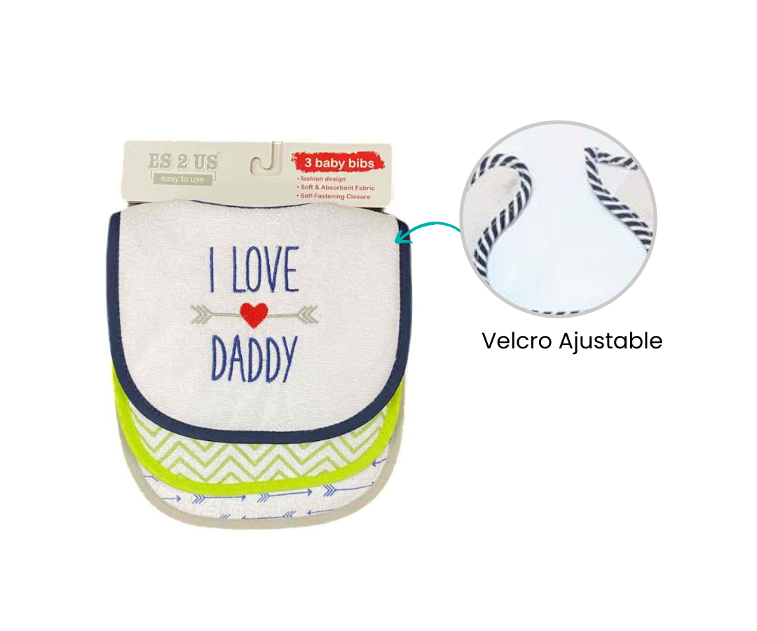 Baberos lavables y ajustables: con velcro suave para que no pellizque la piel sensible del bebé como los broches pueden hacerlo.