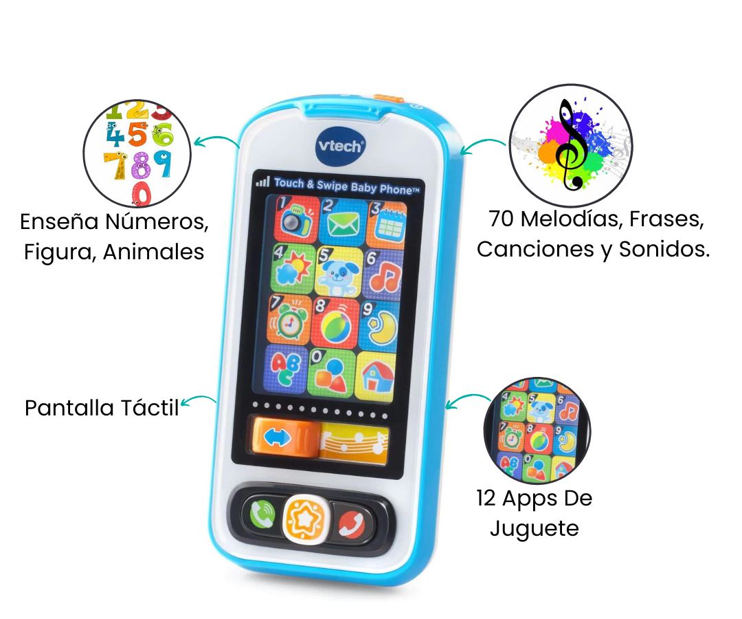 El teléfono SMARTPHONE VTech captura la imaginación de tu hijo con su propio teléfono inteligente para divertirse en juegos de roles. Deslízate entre las pantallas para dos modos de juego en este juguete educativo con doce aplicaciones de aprendizaje de simulación iluminadas o cambia al modo de música para reproducir melodías divertidas y cantar canciones.