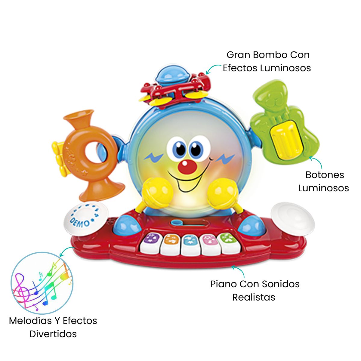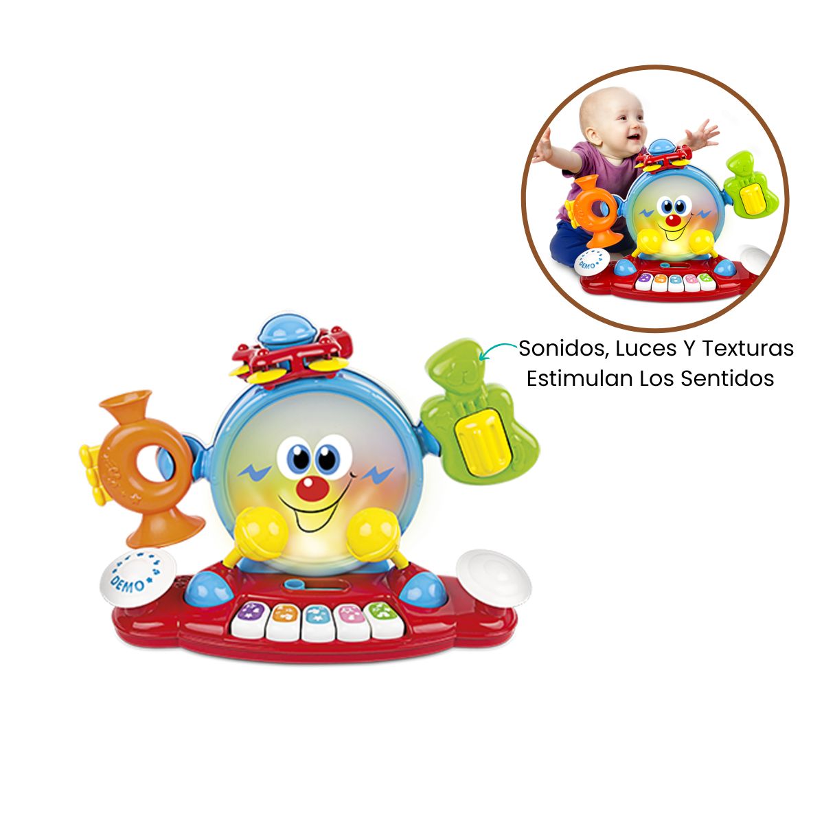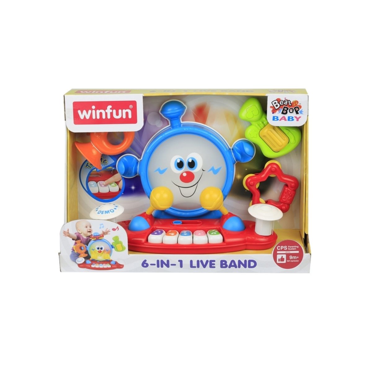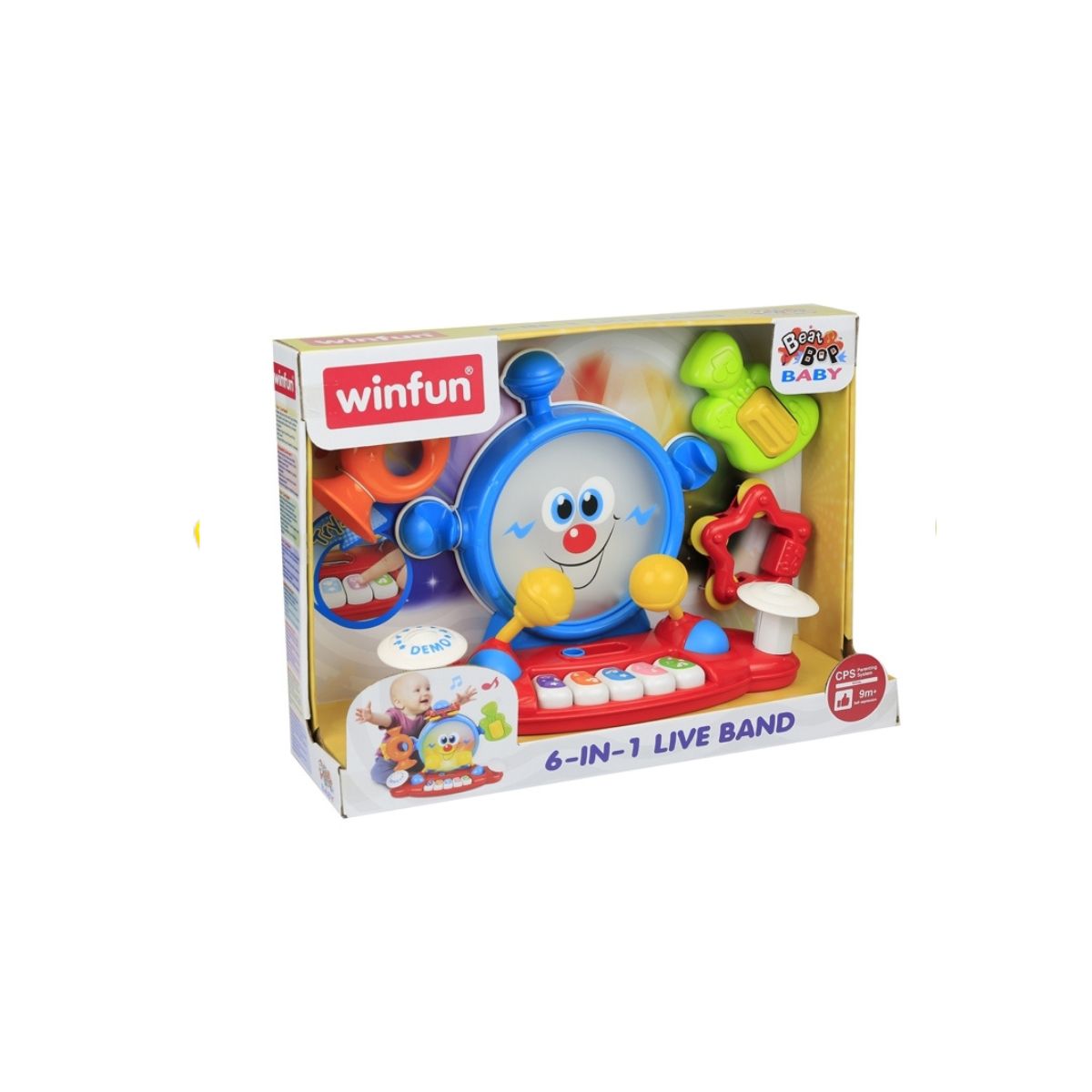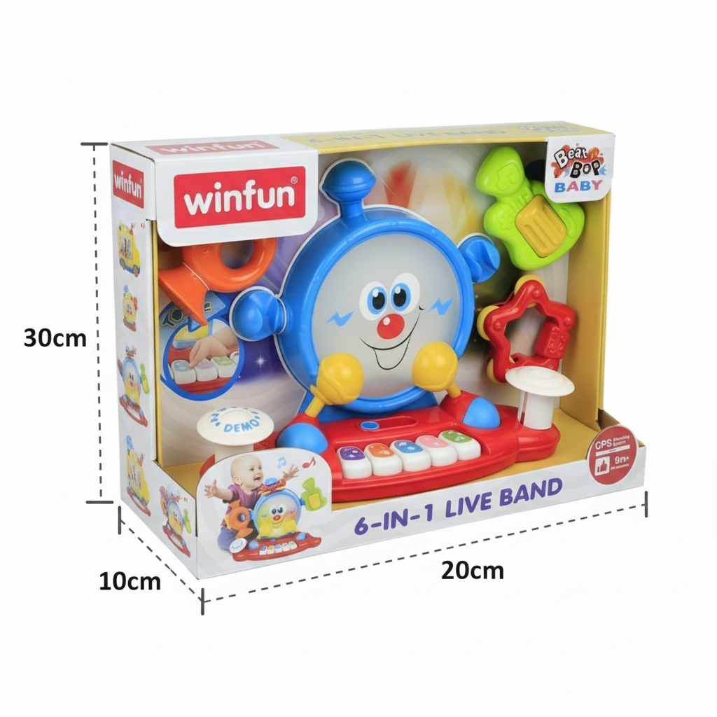 La Banda Musical 6 en 1 de Winfun está diseñada para estimular el amor por la música desde los primeros meses. Incluye instrumentos como tambor, trompeta, guitarra, maracas y platillos, ofreciendo múltiples formas de juego y exploración. Cada pieza genera sonidos alegres y vibrantes que desarrollan la coordinación y la percepción auditiva. Ideal para bebés a partir de 9 meses, promueve la creatividad, el ritmo y la diversión familiar.