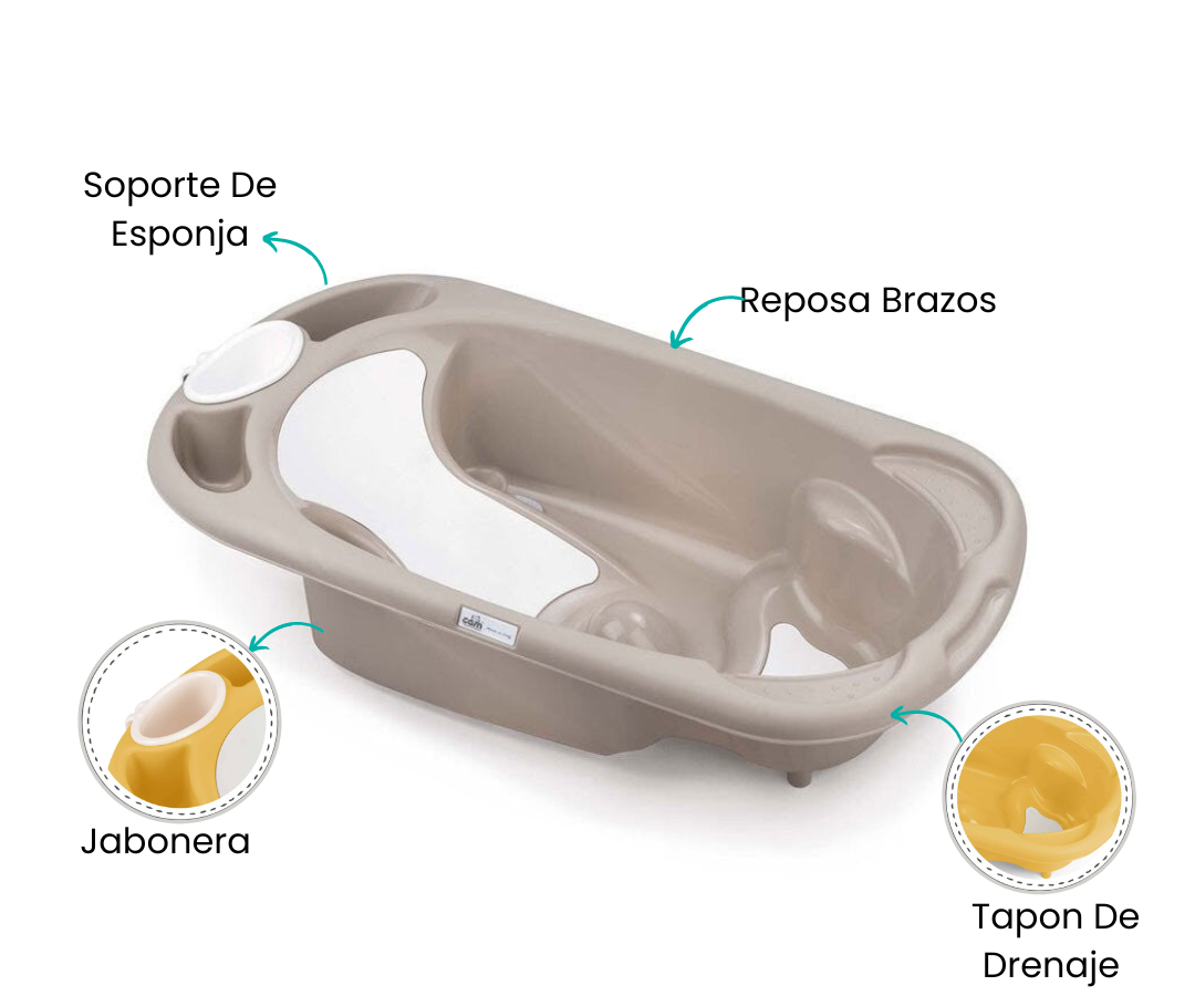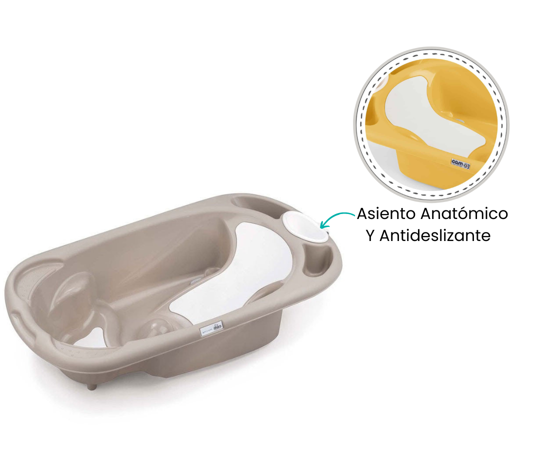La Bañera Baby Beige CAM es perfecta desde los 0 meses, acompañando a tu bebé desde su primer y memorable baño hasta su primer año de vida. Con cómodos apoyos para ayudar cuando está sentado, soporte para los pies y espacios dedicados a productos de higiene, esta bañera garantiza una experiencia segura y cómoda. Diseñada para adaptarse al crecimiento de tu pequeño.