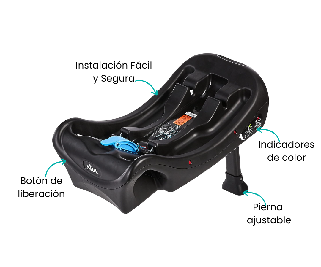 La base ClickFIt es compatible con las sillas de coche Joie gemm y juva. Se instala mediante el cinturón de seguridad de 3 puntos del vehículo y los indicadores de color confirman que la base está instalada correctamente brindando tranquilidad. La pierna de apoyo proporciona máxima estabilidad y seguridad y se ajusta fácilmente al vehículo.
