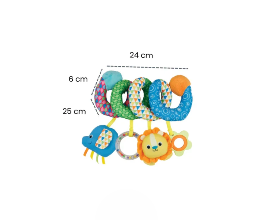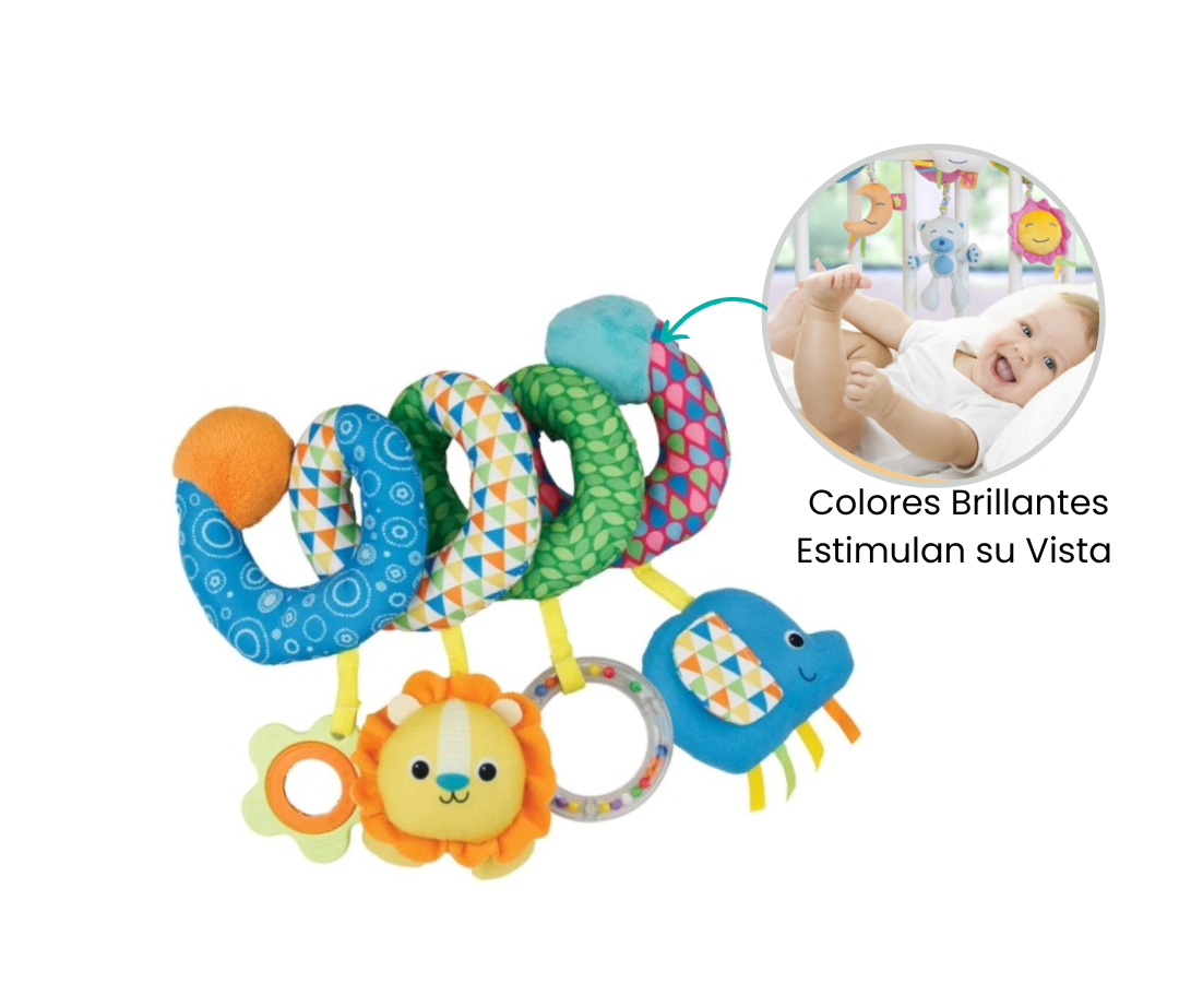 El Espiral no solo entretendrá a tu bebé, sino que también contribuirá al desarrollo de sus habilidades sensoriales y cognitivas. Los colores brillantes estimulan la vista, las texturas suaves fomentan el sentido del tacto y los sonidos suaves capturan su atención auditiva.