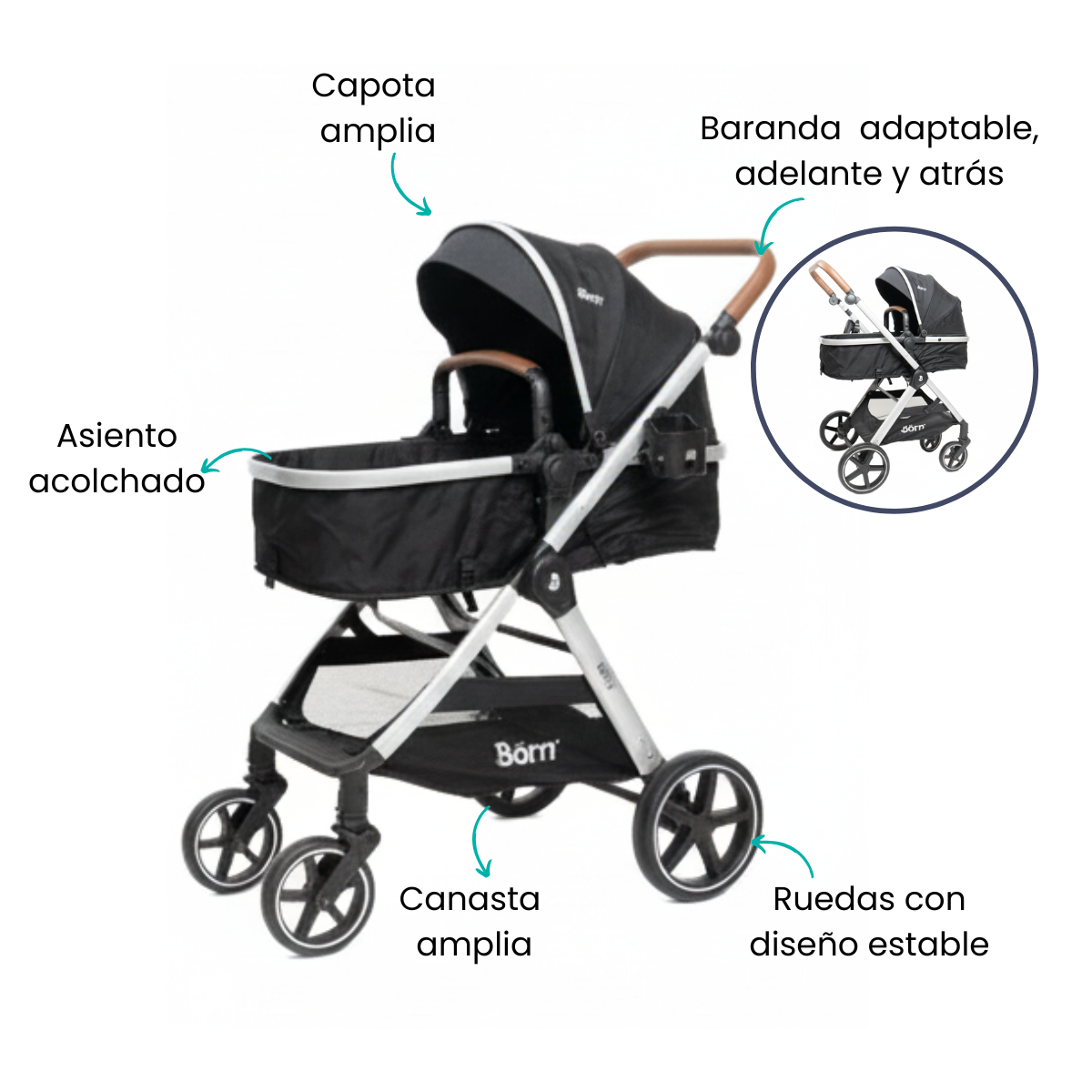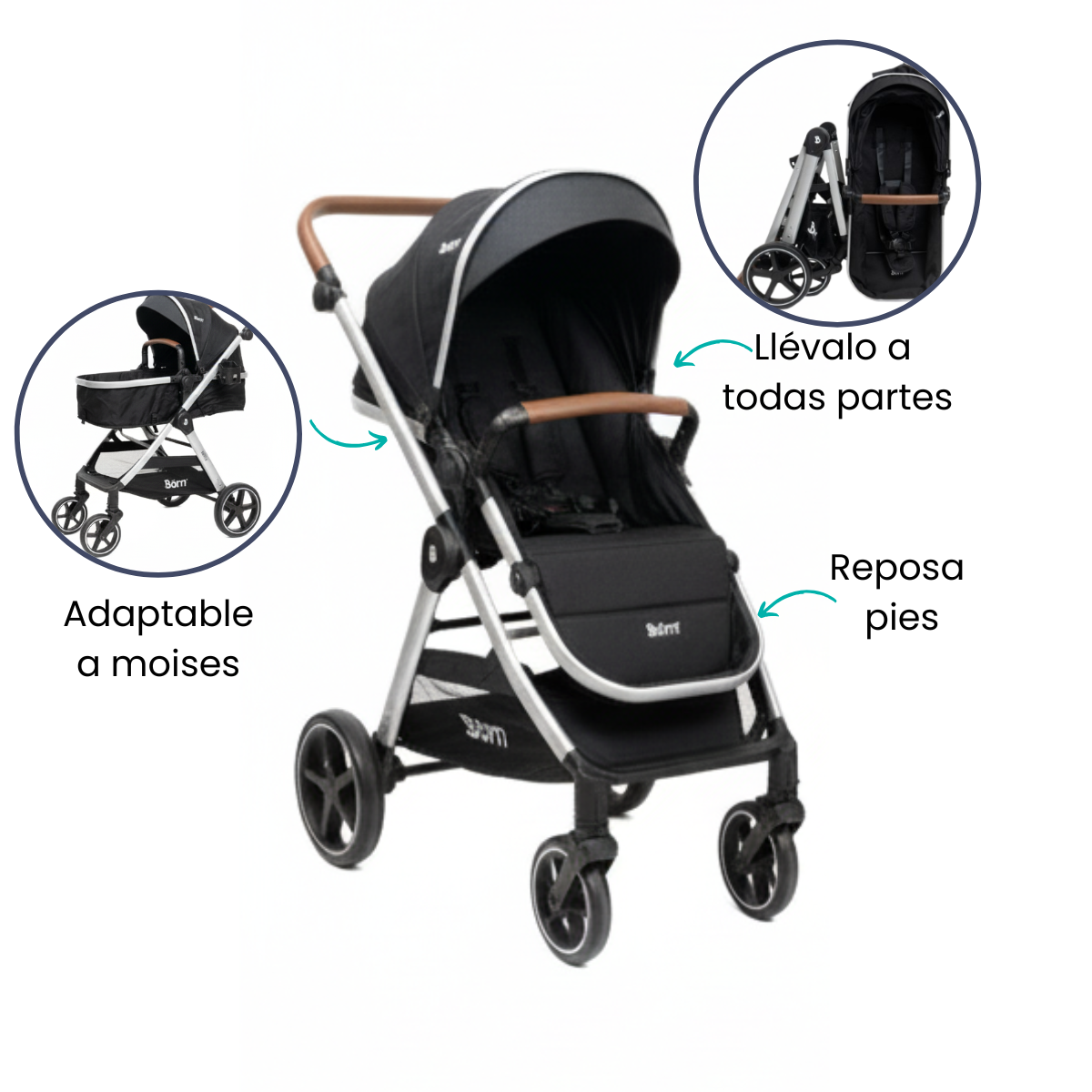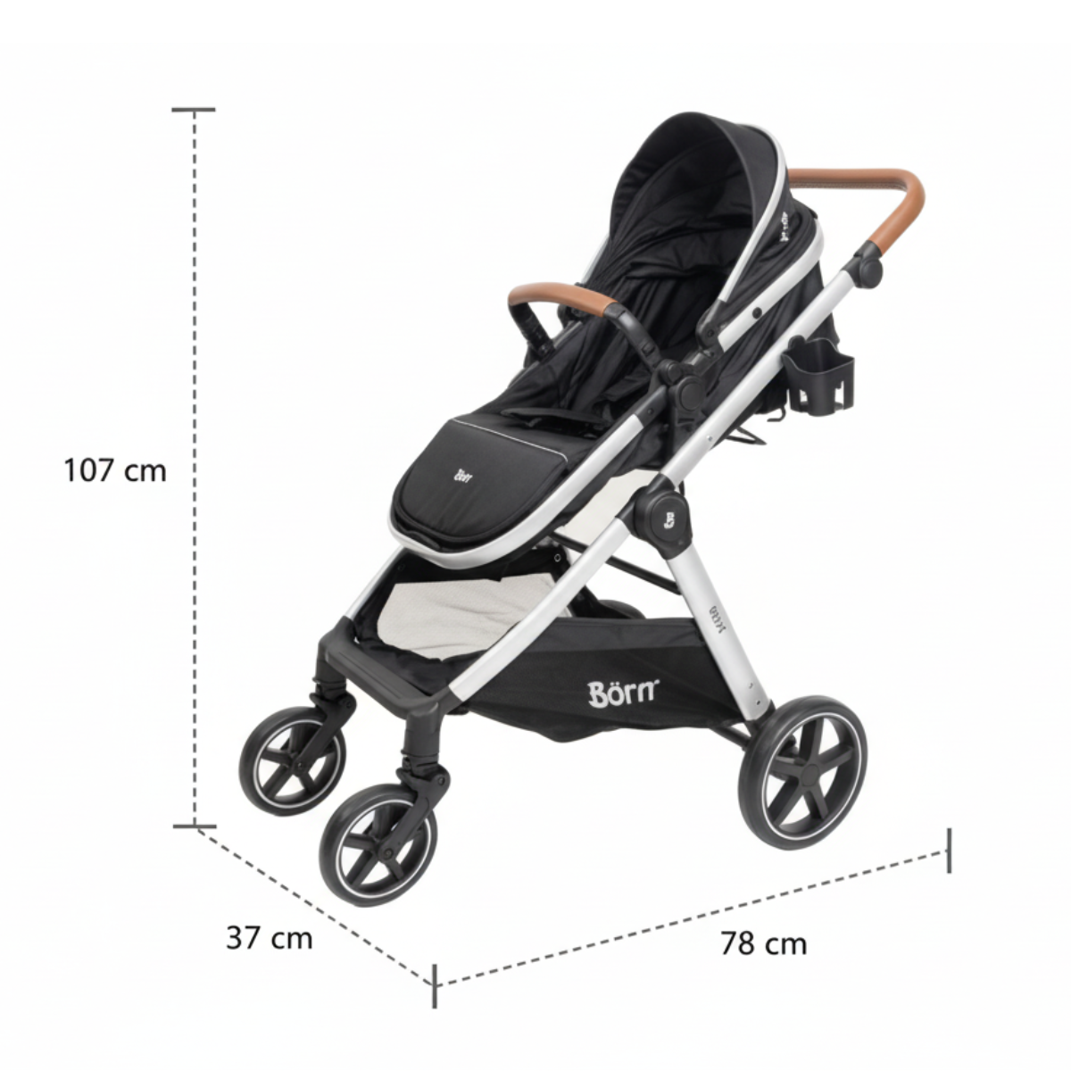 Elección inteligente para tu familia, el coche Belve Stroller Börn | Black, el coche para bebés que te acompaña en cada etapa y hace más simples los paseos con tus hijos.