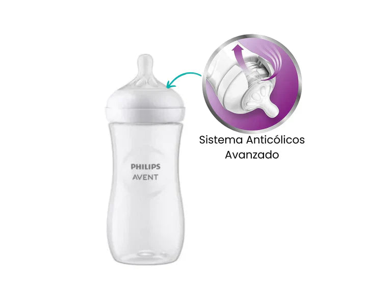 El biberón Philips Avent Natural Response, libera leche solo cuando el bebé lo activa. Los bebés pueden beber, tragar y respirar siguiendo su ritmo natural como en el pecho. Facilita la combinación de lactancia materna y biberón, gracias a la tetina ancha en forma con un tacto suave que imita la forma y el tacto de un pecho.