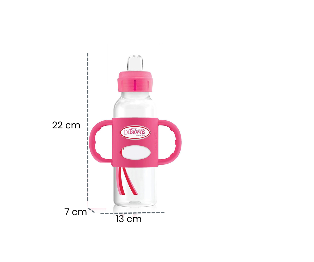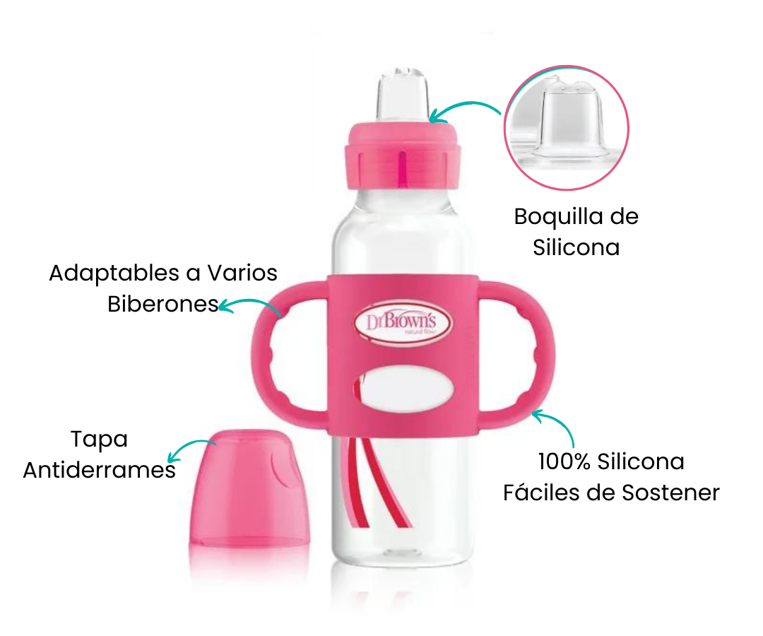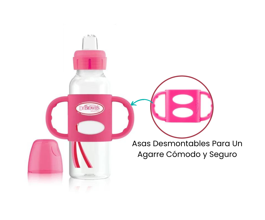 Potencia la independencia y habilidades motoras de tu bebé con el Biberón de Transición con Asas Dr. Brown's. Ofreciendo una experiencia de alimentación cómoda, segura y divertida, este biberón es tu mejor aliado para estimular los agarres gruesos y finos. Las asas incorporadas facilitan la transición de la alimentación con biberón a la independiente, permitiendo que tu pequeño desarrolle destrezas esenciales.