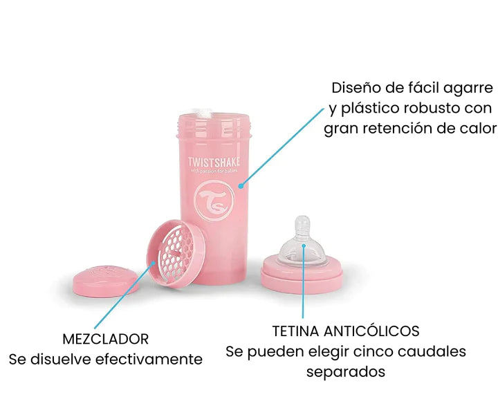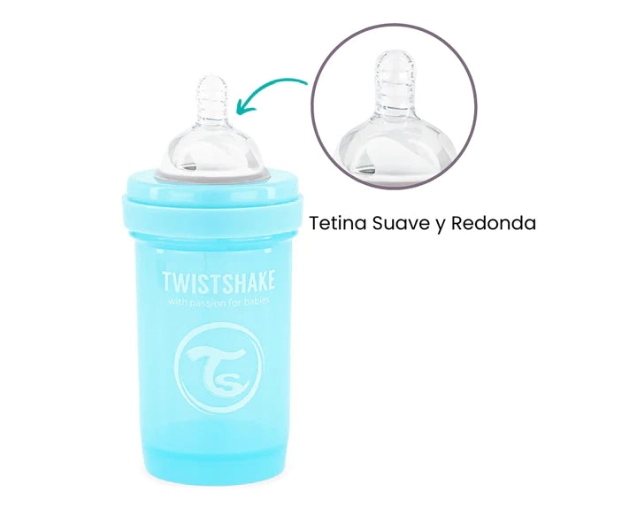 El biberón Anti-Col 180ml Celeste de Twistshake es una excelente opción para ayudar a tu bebé a tener una alimentación cómoda y prevenir los cólicos. Con su diseño funcional y atractivo, garantiza una experiencia de alimentación segura y placentera. Son ideales para combinarse con la lactancia materna normal