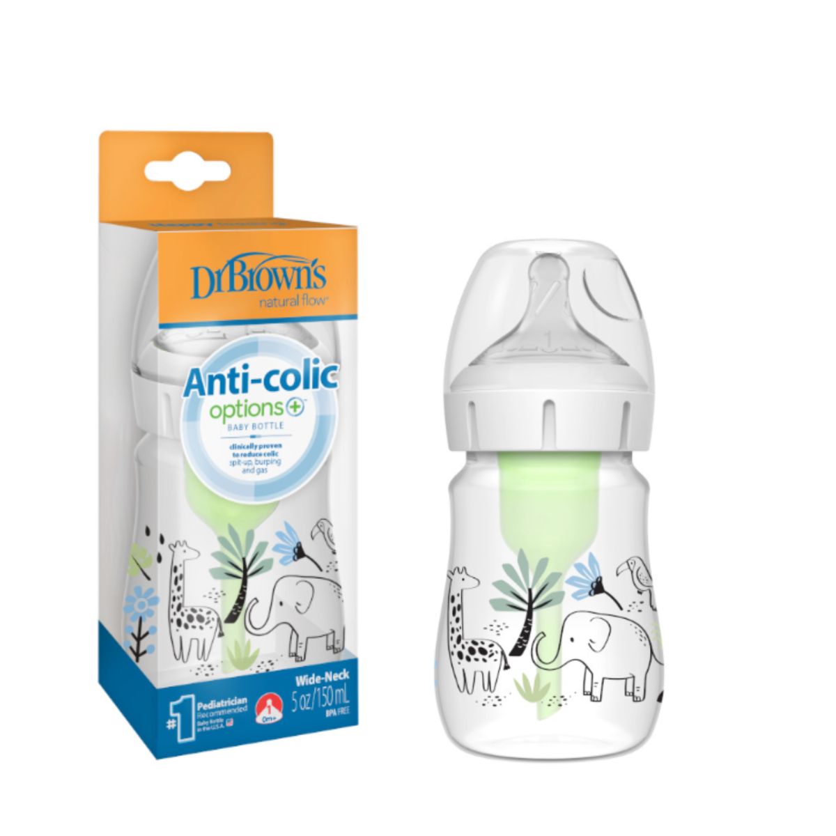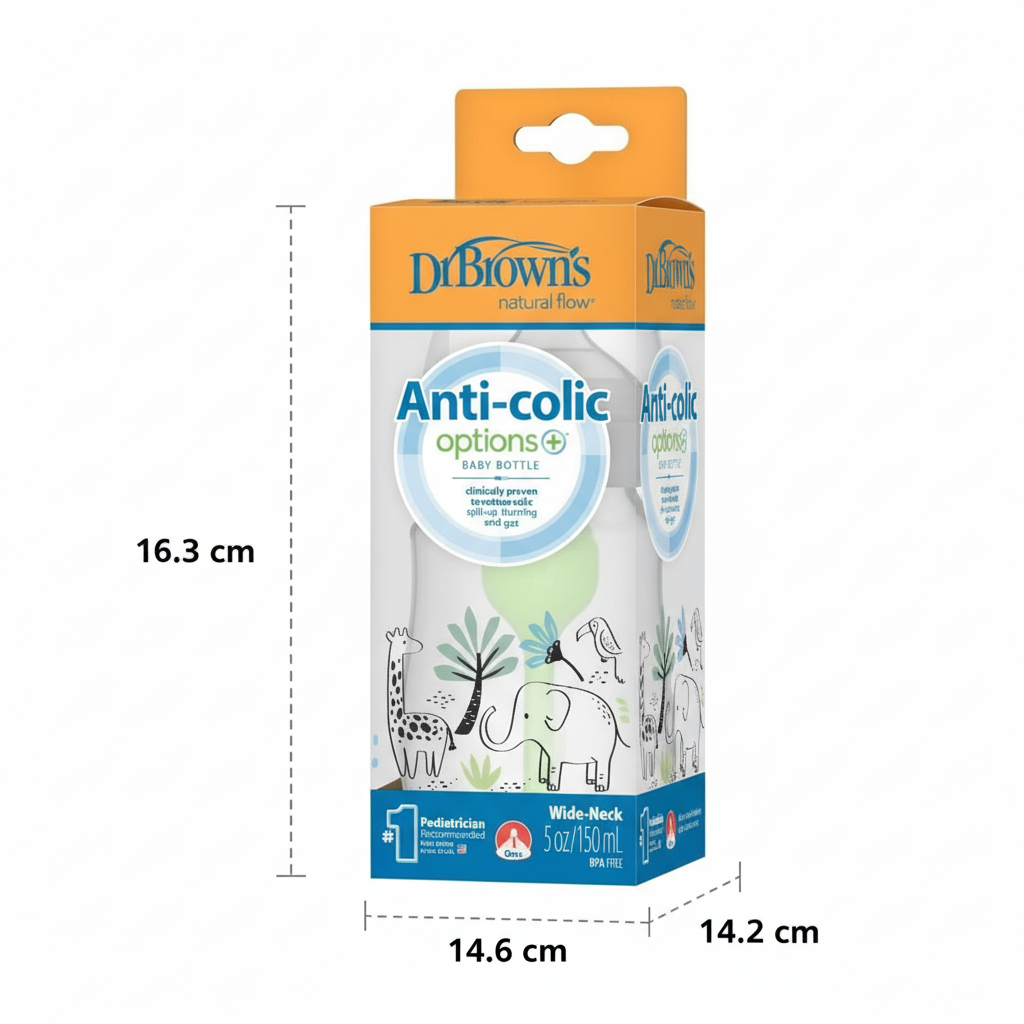 El biberón de edición especial de boca ancha Dr. Brown’s® está fabricado en polipropileno resistente y cuenta con una tetina nivel 1, ideal para los primeros meses. Su diseño ofrece un flujo constante y controlado, permitiendo que el bebé se alimente a su propio ritmo de manera cómoda y segura. Además, su forma ergonómica facilita el agarre, brindando una experiencia de alimentación natural y sin interrupciones.