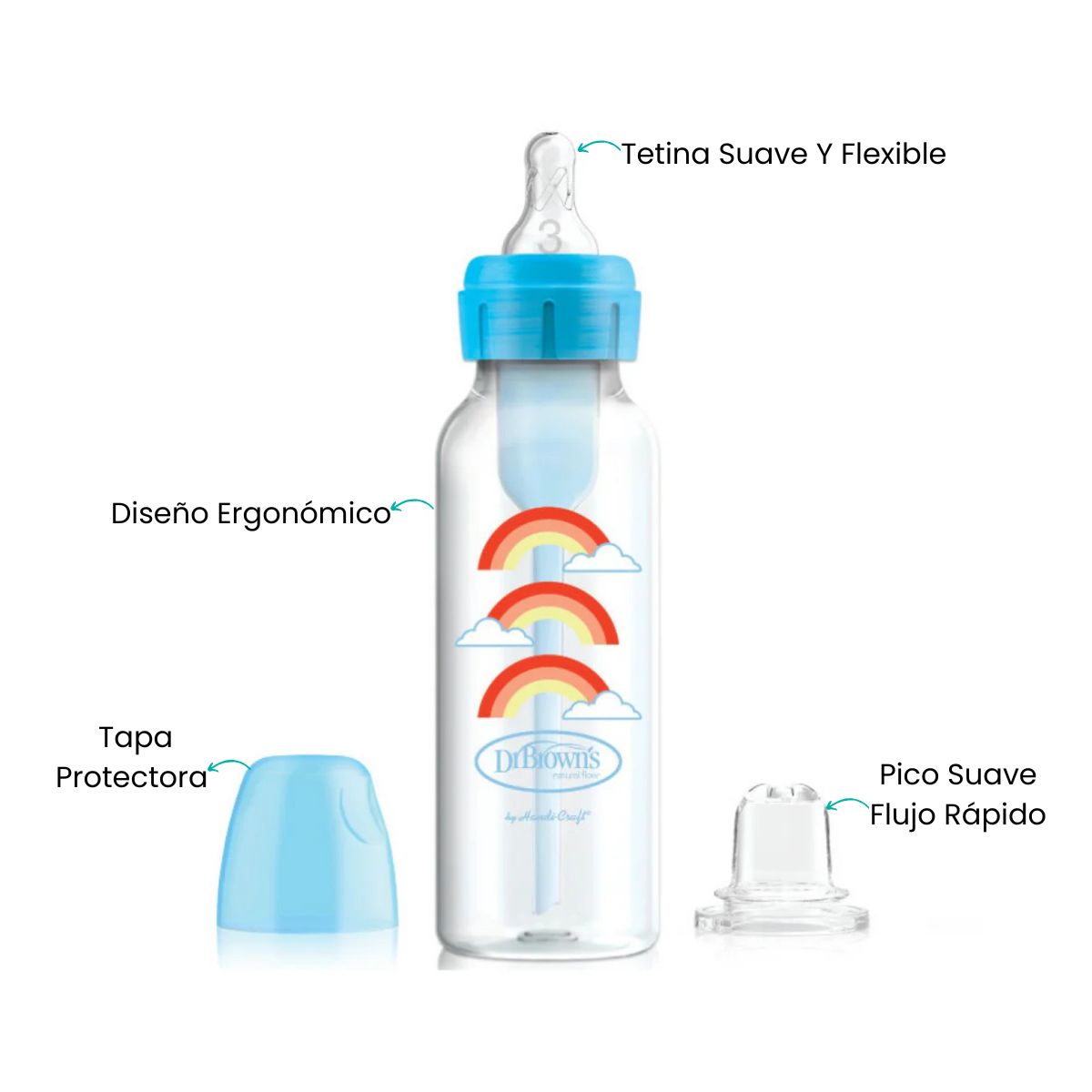 El kit de inicio anticólicos Natural Flow® de Dr. Brown’s® está diseñado para ofrecer una transición suave y cómoda del biberón a la boquilla. Su boquilla de silicona 100% suave brinda una sensación natural que imita la lactancia, evitando irritaciones y facilitando la adaptación del bebé. Compatible con los biberones Dr. Brown’s, permite mantener la familiaridad del pequeño mientras aprende nuevas habilidades. Además, su tapa a presión mantiene la boquilla limpia y lista para usar dondequiera que estés.