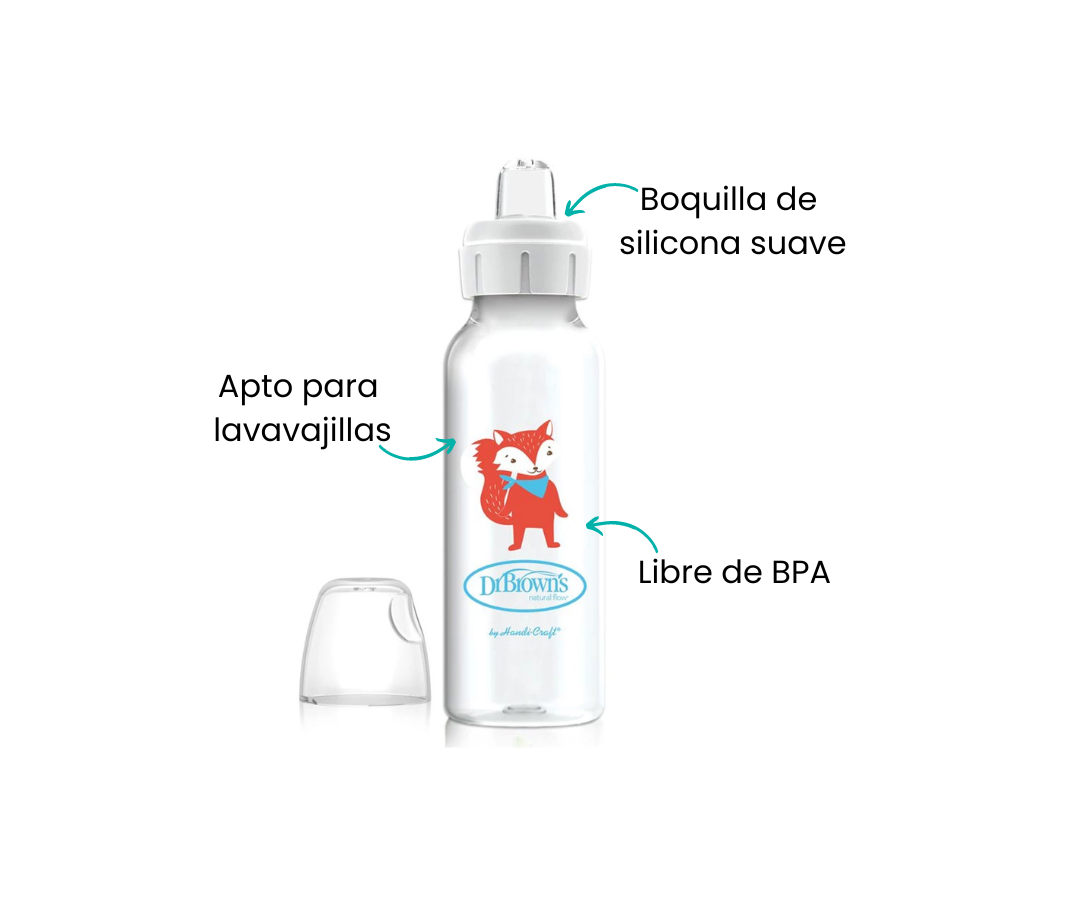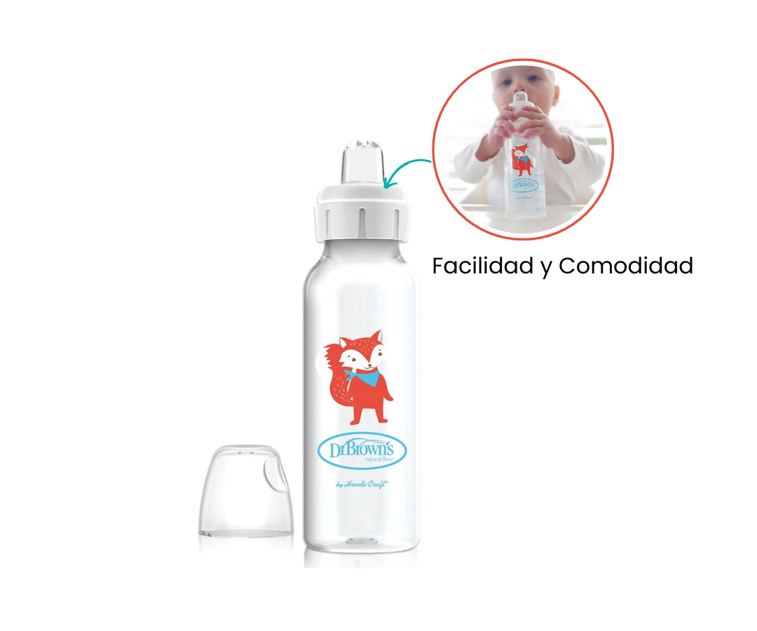 El biberón estrecho para sorber Dr. Brown's® Milestones™ facilita la transición del bebé del biberón a la taza. Su diseño ergonómico y tamaño reducido son ideales para las pequeñas manos del bebé. Además, su válvula de flujo controlado previene derrames y facilita el aprendizaje. Con este biberón, tu bebé dará sus primeros pasos hacia la independencia en la hora de comer.