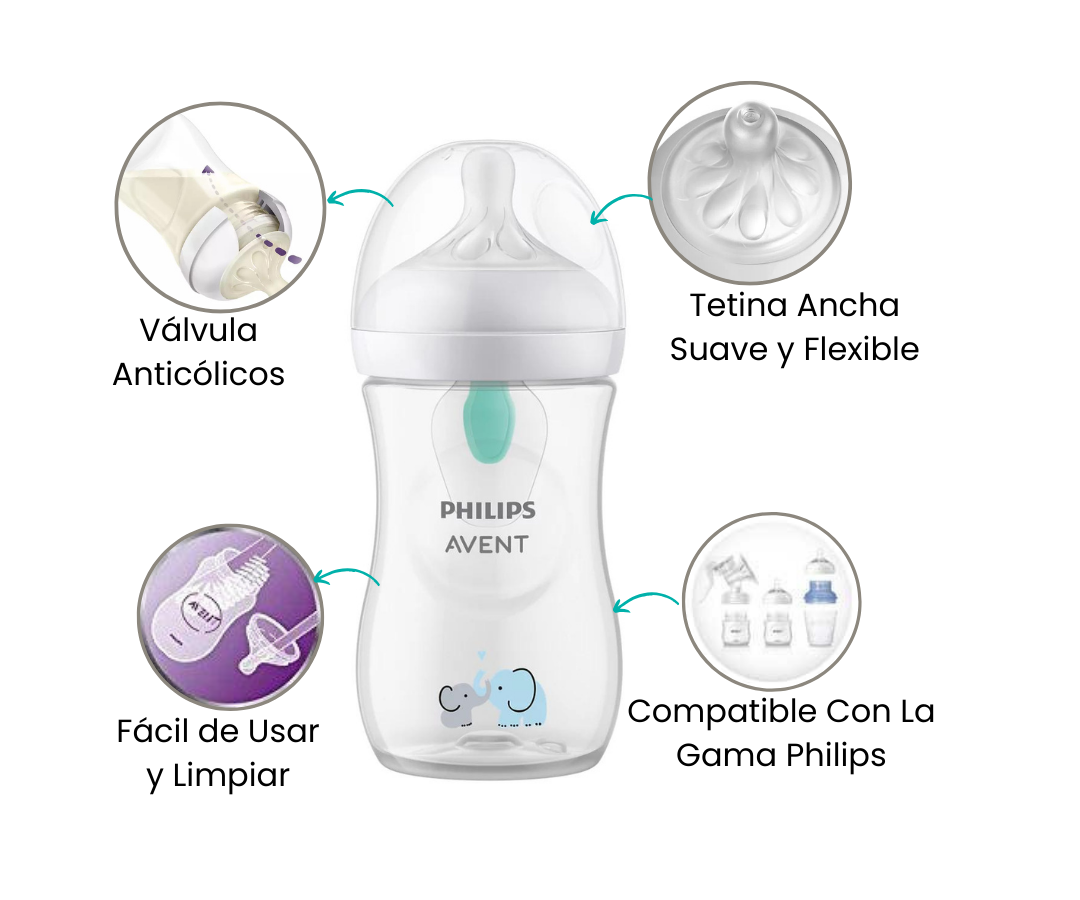 La tetina de respuesta natural proporciona una alimentación tranquila y cómoda al apoyar el ritmo único de succión, deglución y respiración del bebé. Su diseño se asemeja a la forma del pecho materno, facilitando una transición suave entre la lactancia y el biberón.