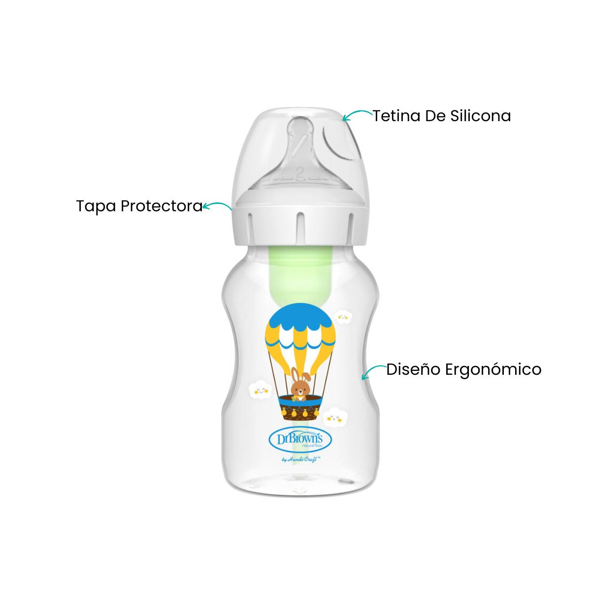 El biberón de edición especial de boca ancha Dr. Brown’s® está fabricado en polipropileno resistente y cuenta con una tetina nivel 1, ideal para los primeros meses. Su diseño ofrece un flujo constante y controlado, permitiendo que el bebé se alimente a su propio ritmo de manera cómoda y segura. Además, su forma ergonómica facilita el agarre, brindando una experiencia de alimentación natural y sin interrupciones.