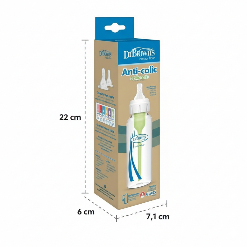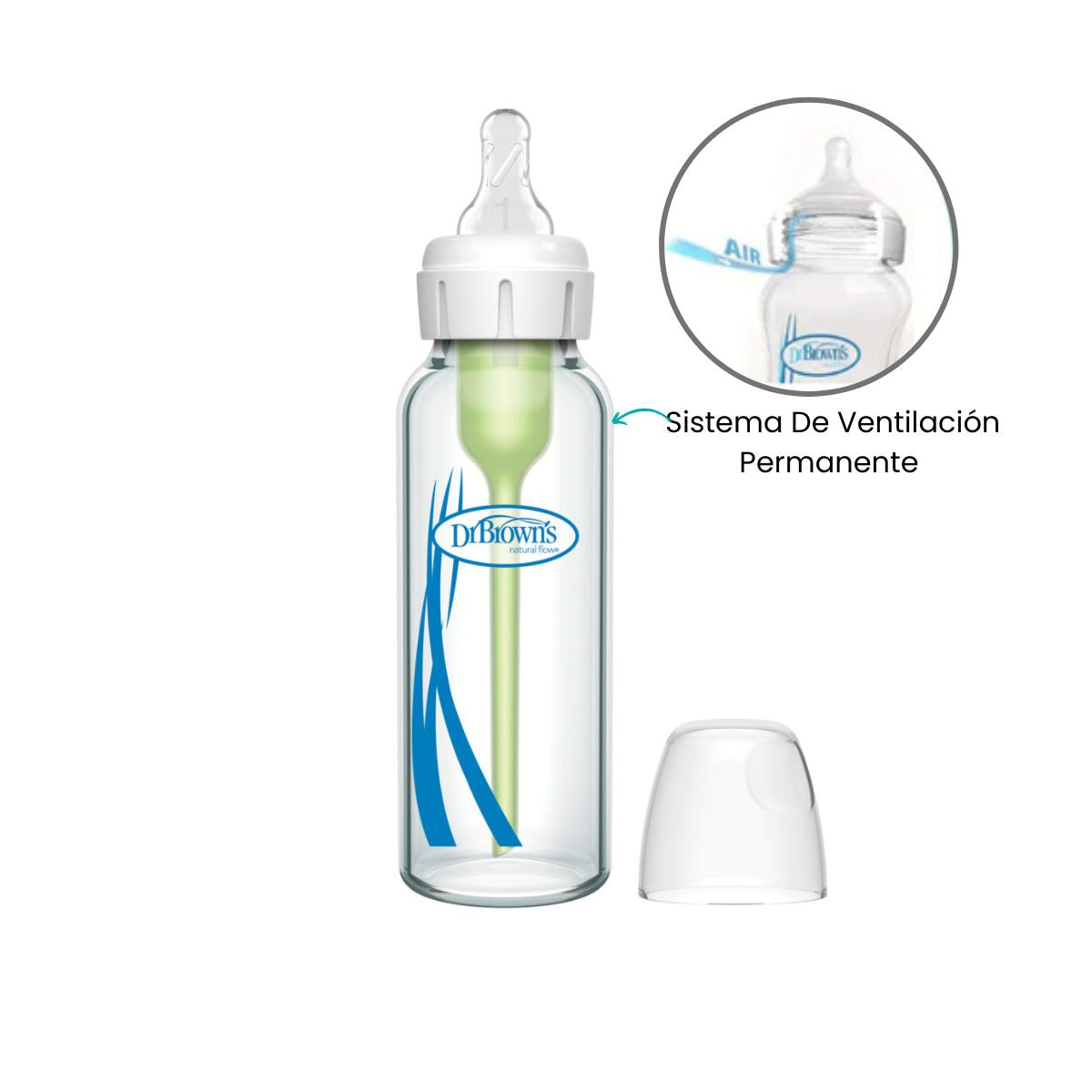 El biberón Dr. Brown’s® Options+™ ofrece una versatilidad única, ya que puede usarse con o sin el sistema de ventilación interna, adaptándose a las necesidades de cada etapa del crecimiento del bebé. Su sistema anticólicos reduce las molestias digestivas y favorece una alimentación más natural y cómoda. Diseñado para acompañar el desarrollo del pequeño, garantiza bienestar, salud y tranquilidad en cada toma.